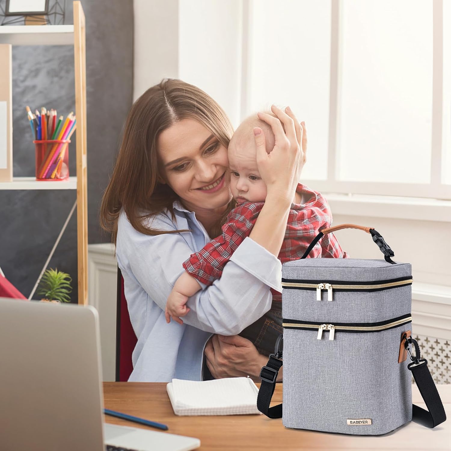 - Convenient Two-Layer Design: With its two-layer design, our breastmilk cooler bag offers maximum versatility. The upper layer is perfect for storing lunch boxes and food, while the lower layer can accommodate up to 6 bottles. Stay organized and keep everything in one place.
