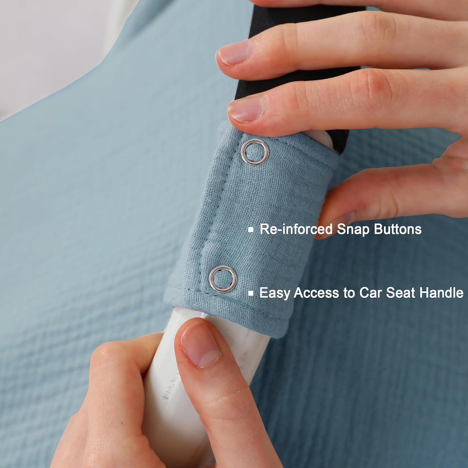 100% Muslin Cotton Car Seat Cover Baby, Carseat Canopy Cover, Universal Fit Stroller Covers for Boys and Girls (Blue)