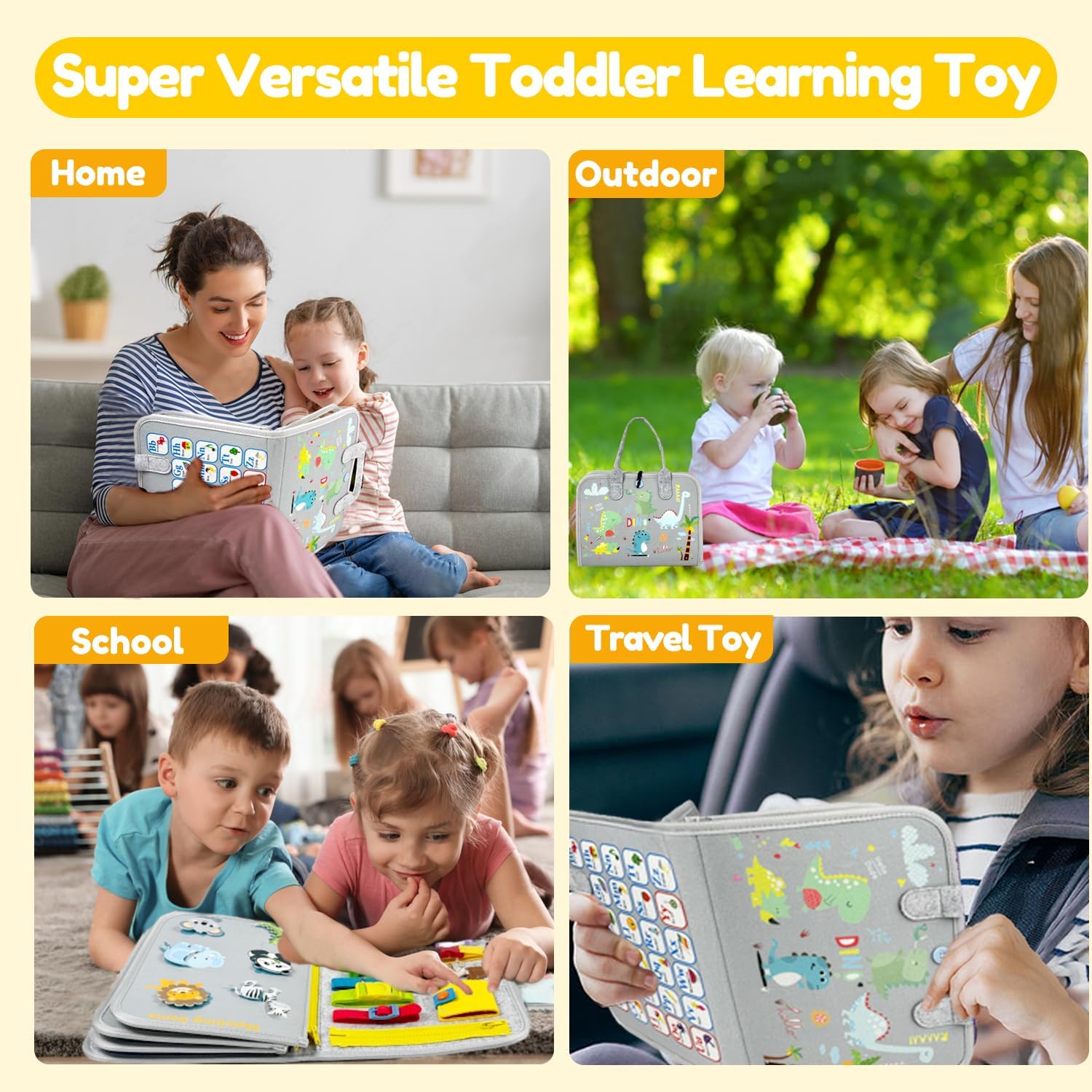 • Perfect Gifts for 1-4 Year Old Boys Girls: Looking for a gift that combines fun and learning? Our dinosaur-themed busy board is a fun learning toys for toddlers 2-4 years and the ideal gifts for 1 2 3 4 years boys and girls. Whether it’s for a birthday, Christmas, or just because, this vibrant, screen-free sensory educational toy offers opportunities for creative exploration, making it a thoughtful and exciting gift for any occasion