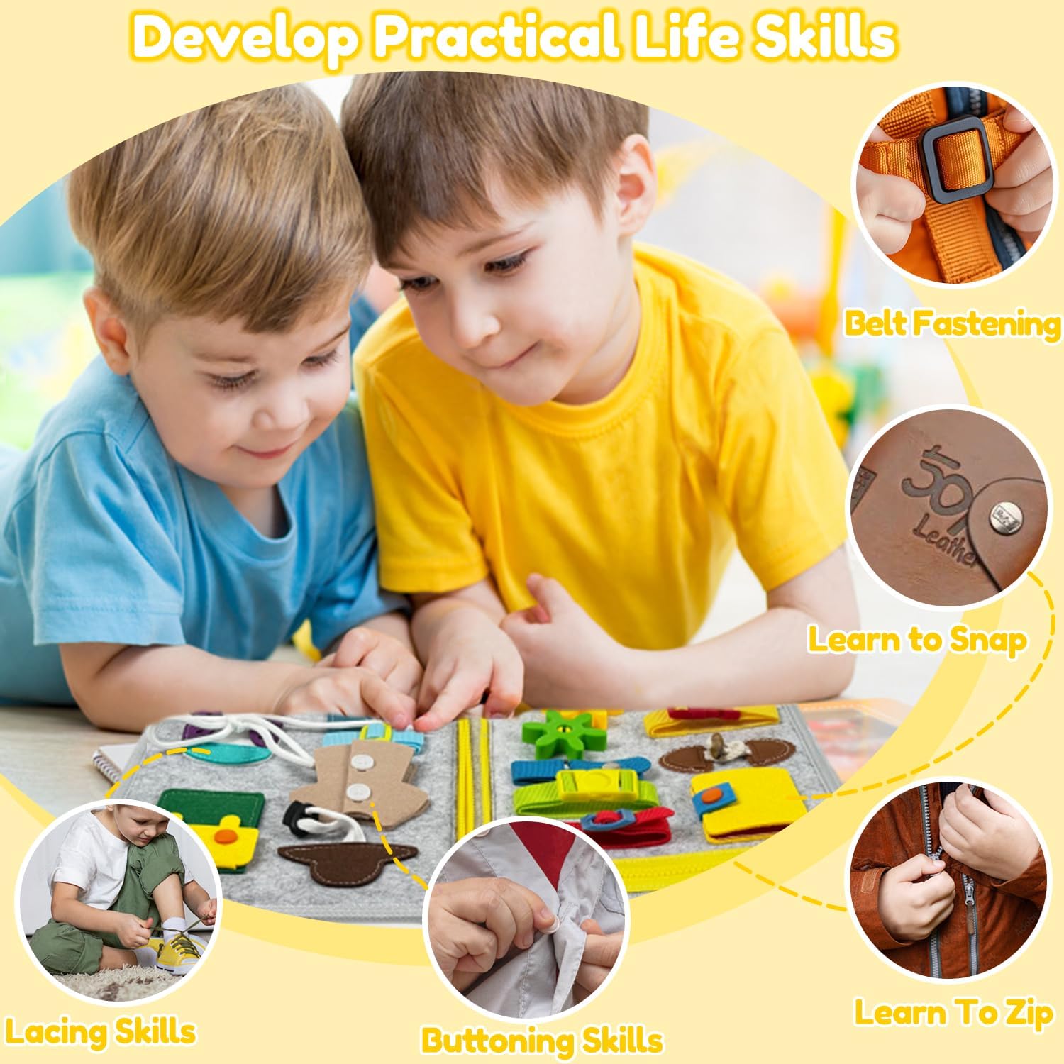 • Safe and Toddler-Friendly: Our activity board, crafted from safe, non-toxic felt, is a perfect sensory toys for toddlers 1-3. Thoughtfully designed with larger components and rounded edges, it minimizes risk of choking or injury. Plus, it arrives ready to use - pre-installed with hook & loop fasteners, so no assembly is needed. Enjoy a safe, engaging, and hassle-free way to support your child’s sensory exploration and early learning