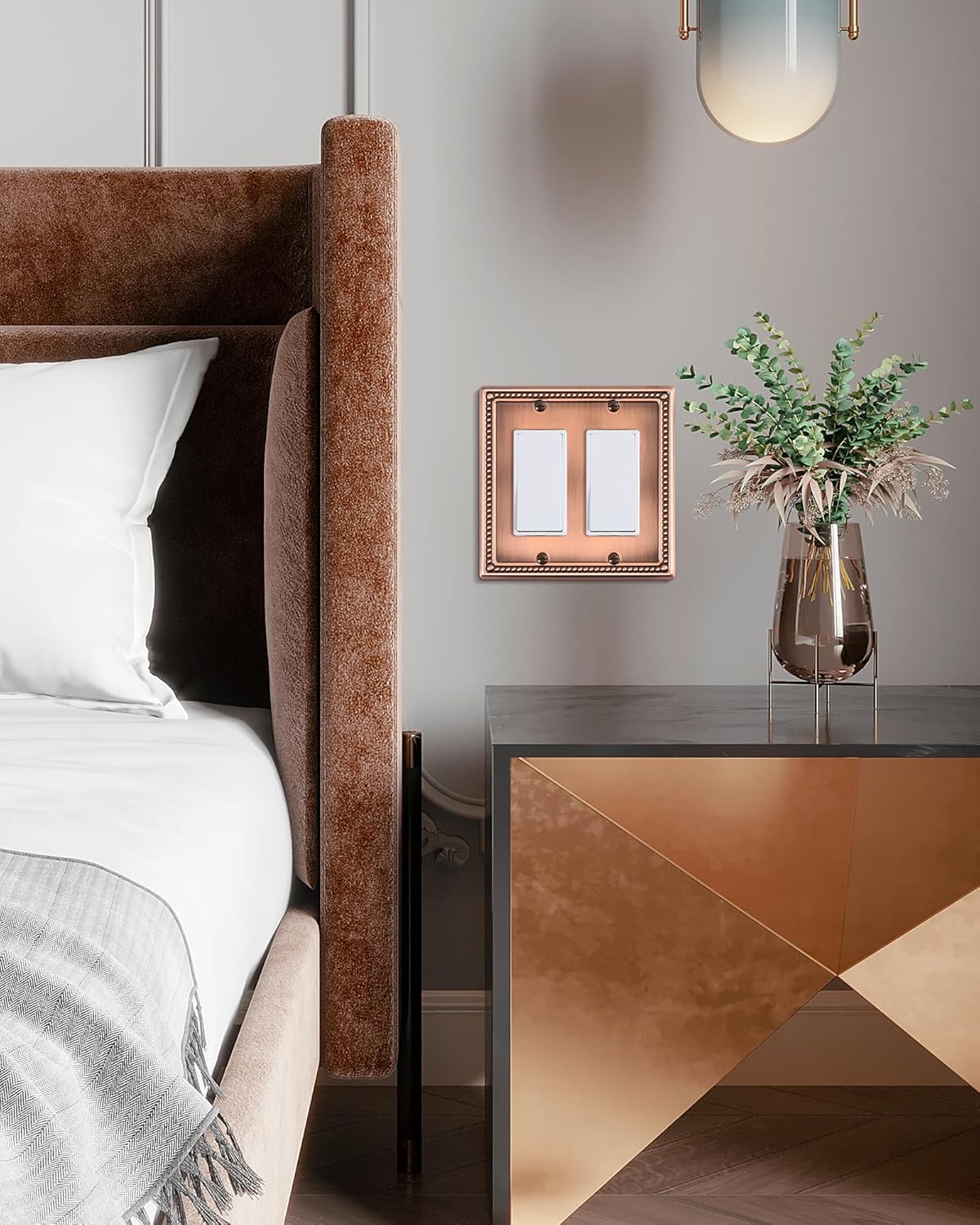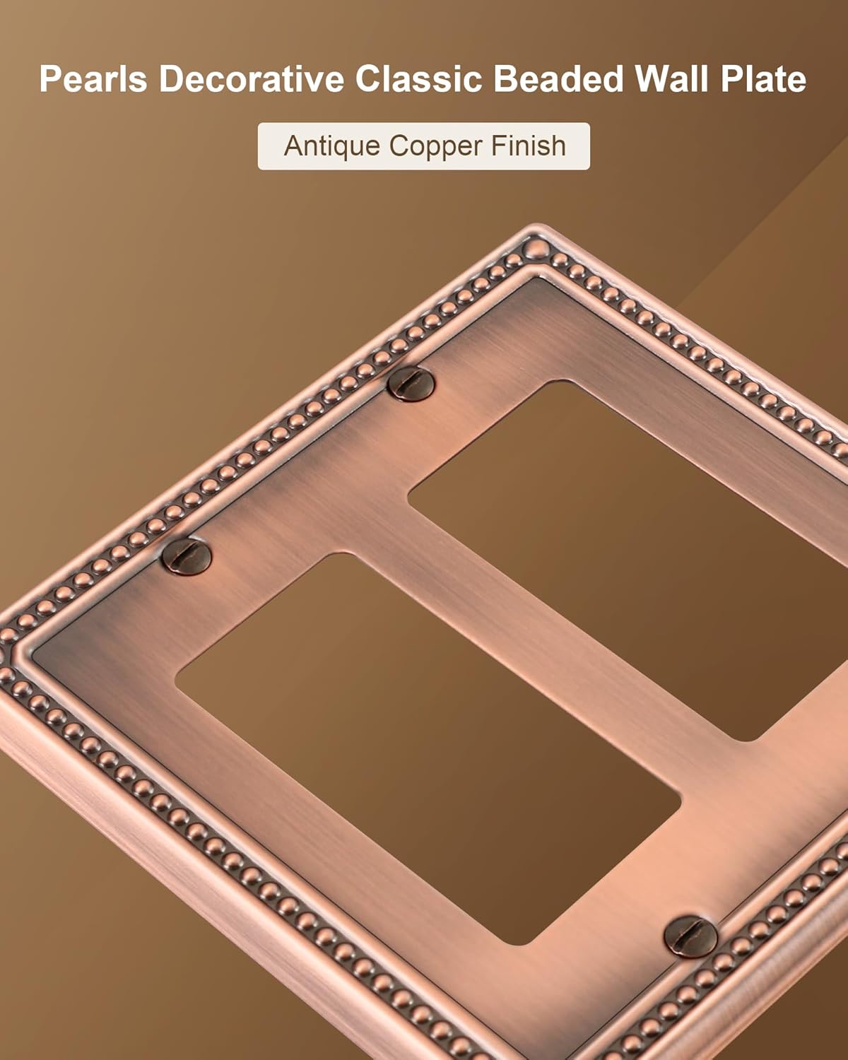 2-Pack Double Decorator Outlet Cover Plate, Antique Copper Pearls Decorative Switch Plates and Outlet Covers, Metal Wall Plates for Electrical Outlets, Receptacle, GFCI Outlet, Dimmer Switch