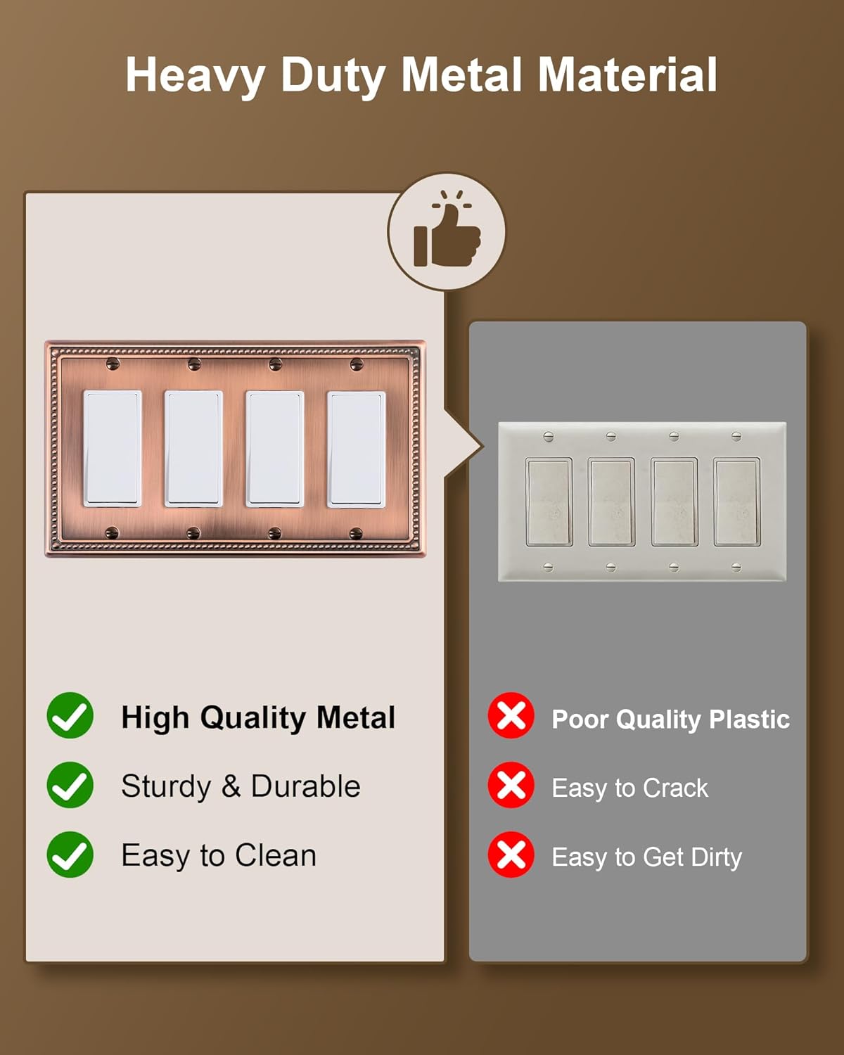 - Durable Metal Construction - Built to last, constructed from thick and sturdy metal, this wall plate cover ensures long-lasting durability and sturdiness, allows for easy cleanup and resistant to tarnishing and corrosion, not easy to break. Ensuring it remains a stunning addition to your home for years to come.