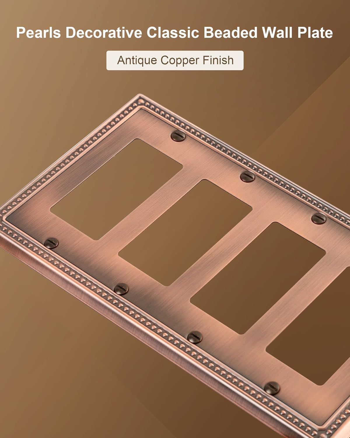 2-Pack Quad Decorator Outlet Cover Plate, Antique Copper Pearls Decorative Switch Plates and Outlet Covers, Metal Wall Plates for Electrical Outlets, Receptacle, GFCI Outlet, Dimmer Switch