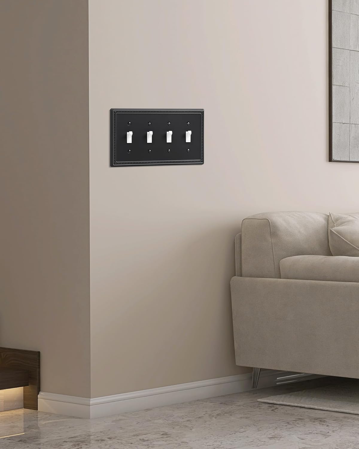 - Timelessly Elegant - The quad light switch plate covers feature an exquisite black finish with a traditionally styled beaded border. Offering a functional yet elegant enhancement to your home decor. Stylish wallplate effortlessly blends practicality with a refined decorative accent and sophisticated charm.