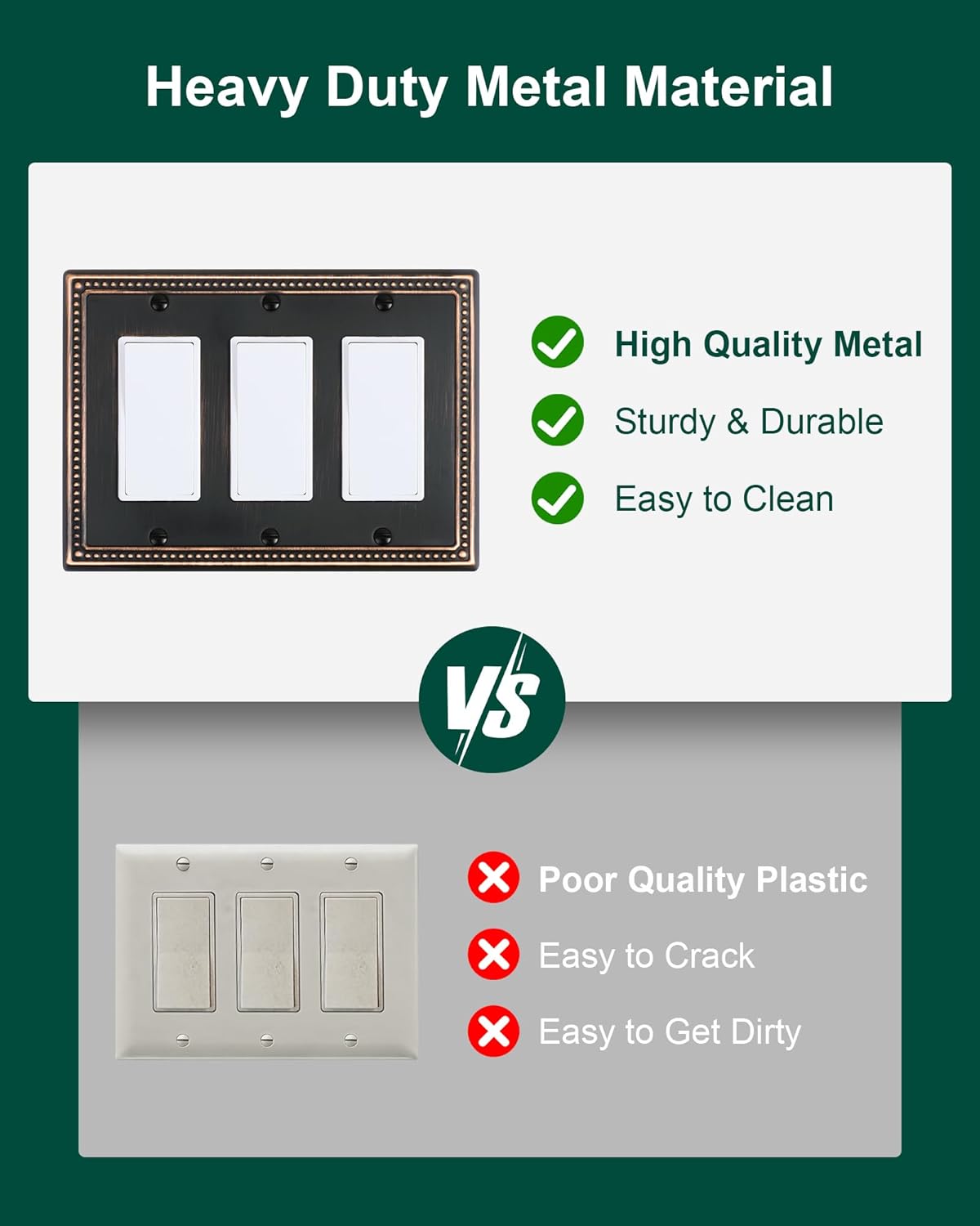 - Durable Metal Construction - Built to last, constructed from thick and sturdy metal, this wall plate cover ensures long-lasting durability and sturdiness, allows for easy cleanup and resistant to tarnishing and corrosion, not easy to break. Ensuring it remains a stunning addition to your home for years to come.