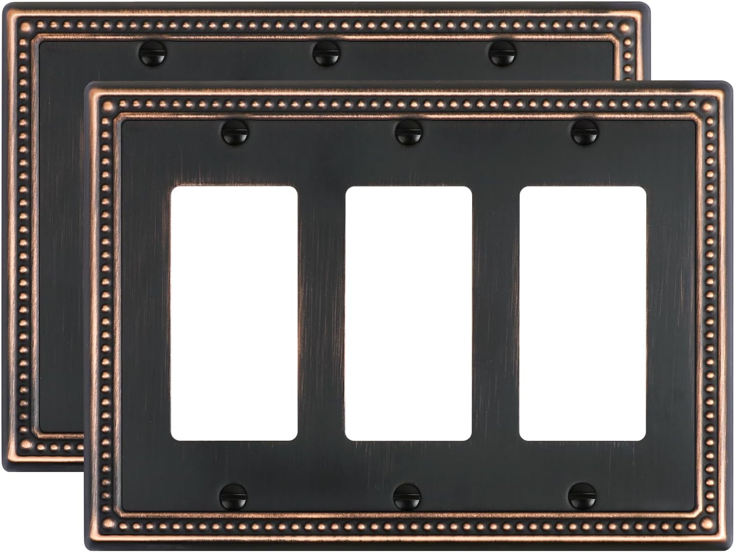 - Timelessly Elegant - The tripple decorator outlet covers feature an exquisite aged bronze finish with a traditionally styled beaded border. Offering a functional yet elegant enhancement to your home decor. Stylish wallplate effortlessly blends practicality with a refined decorative accent and sophisticated charm.