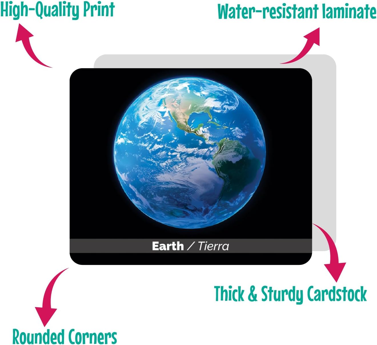 - BILINGUAL LEARNING TOOL: Each card includes the object’s name in both English and Spanish—great for building vocabulary and sparking curiosity across languages.