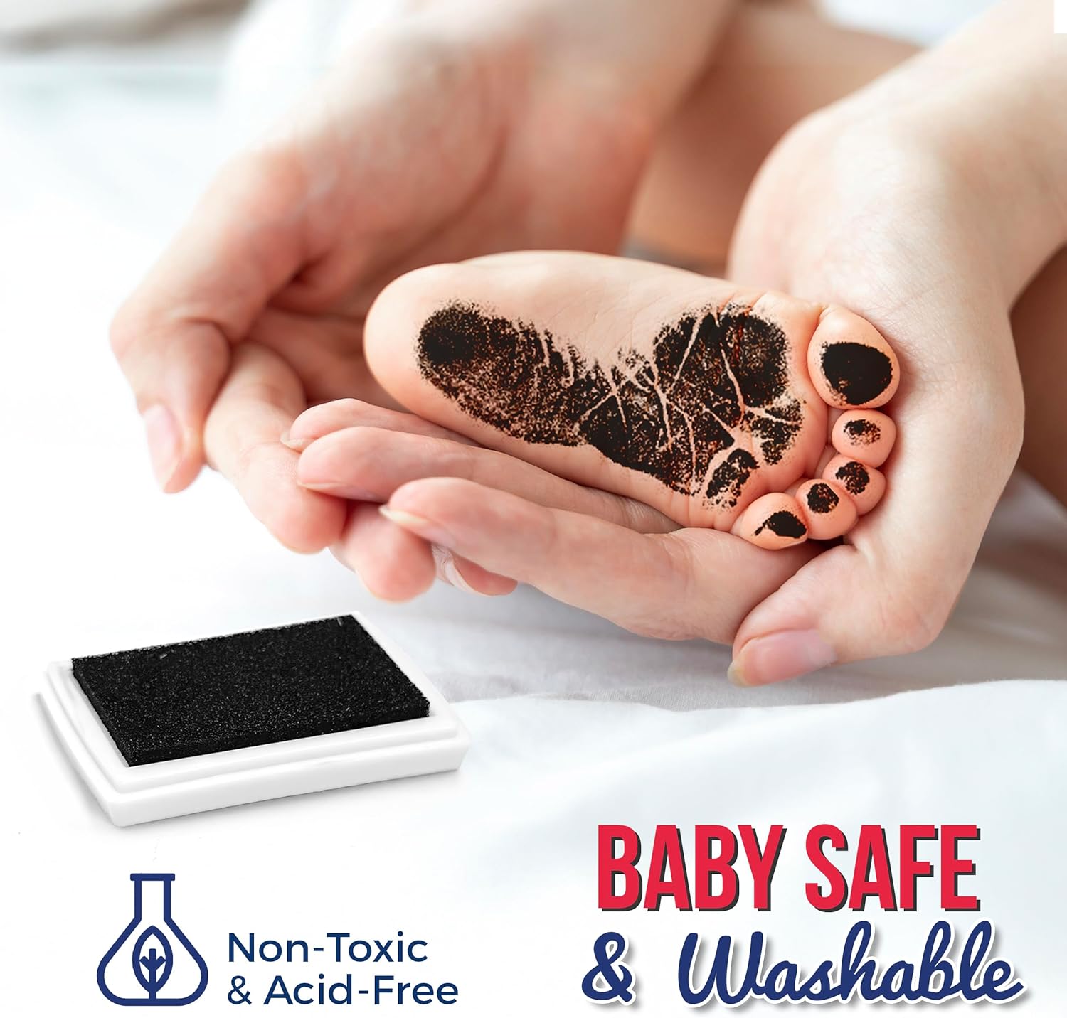 - 👼 NONTOXIC INK PAD: Our baby ink hand and footprint kit not only features non-toxic inkpads, ensuring utmost safety for your infant's delicate skin but also includes gentle water wipes for convenient cleanup, providing a seamless and worry-free experience in capturing your little one's precious handprint and footprint.
