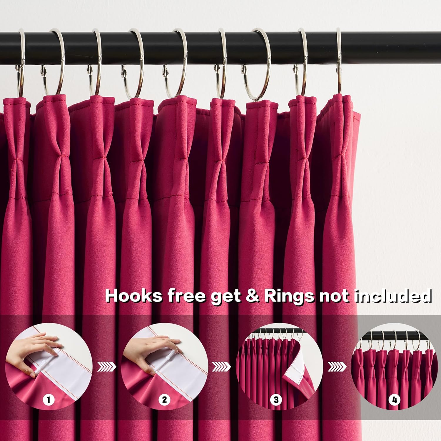 KEQIAOSUOCAI Pinch Pleat Curtains 92 Inches Long,Home Fashion Microfiber Thermal Insulated Solid Pleated Room Darkening Curtain for Bedroom (Hot Pink, 2 Panels, 40 inch Wide by 92 Long)