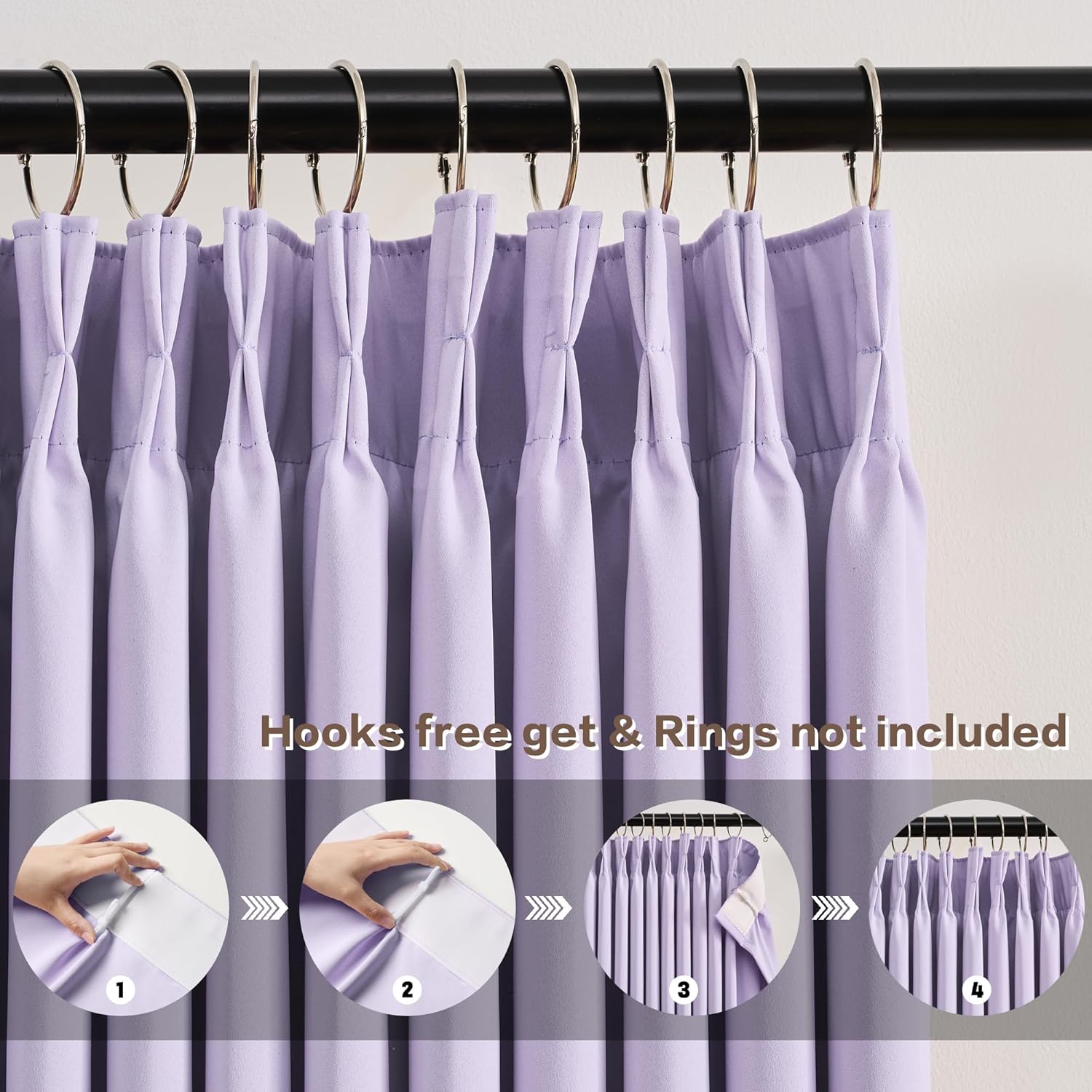 KEQIAOSUOCAI Lilac Blackout Curtain Drapes Pleated with Hooks,Thermal Insulated Solid Drapes Light Blocking Window Treatment for Bedroom Living Room(Lavender, 2 Panels, W40 x L102)