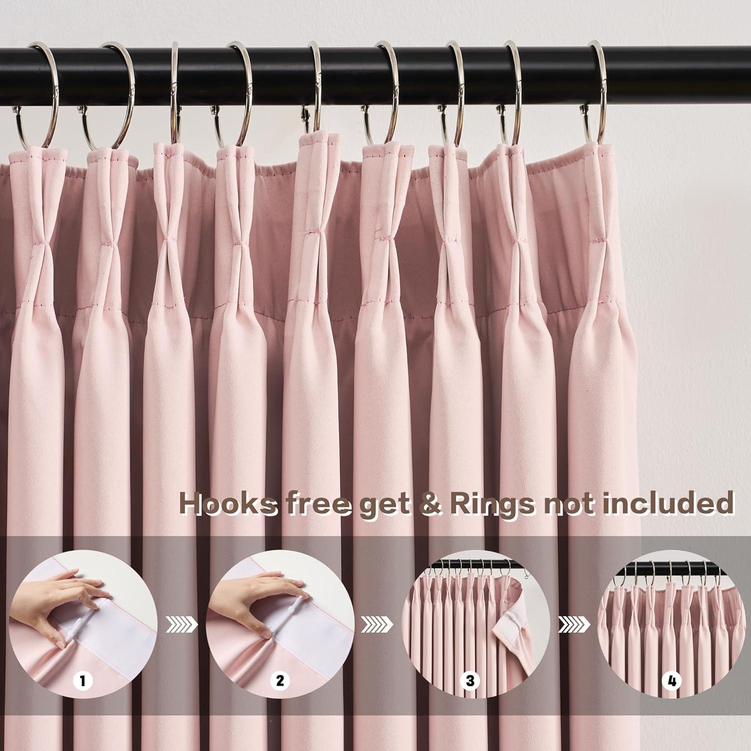 KEQIAOSUOCAI Pink Elegant Pinch Pleat Curtains 84 Inches Long, Light Blocking High End Pleated Drapes for Girls Nursery Bedroom Living Room Window Panels with Hooks 40 x 84 Baby Pink