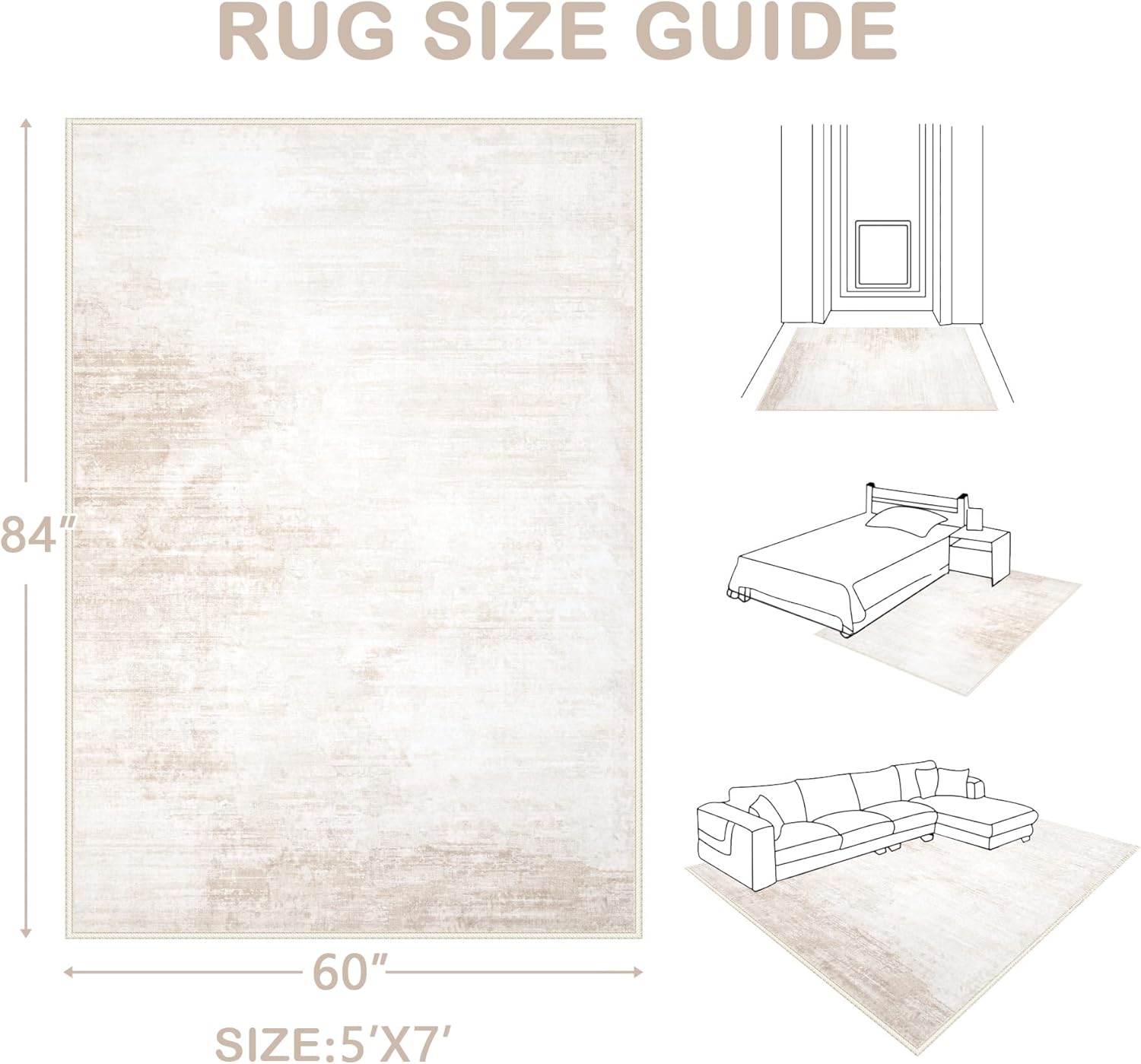 Area Rugs 5x7 Living Room: Washable Rug Modern Abstract Large Rug Soft Non Slip Neutral Rug Stain Resistant Indoor Carpet for Bedroom Kitchen Dining Room Table Nursery Home Office Rugs(Beige,5'x7')