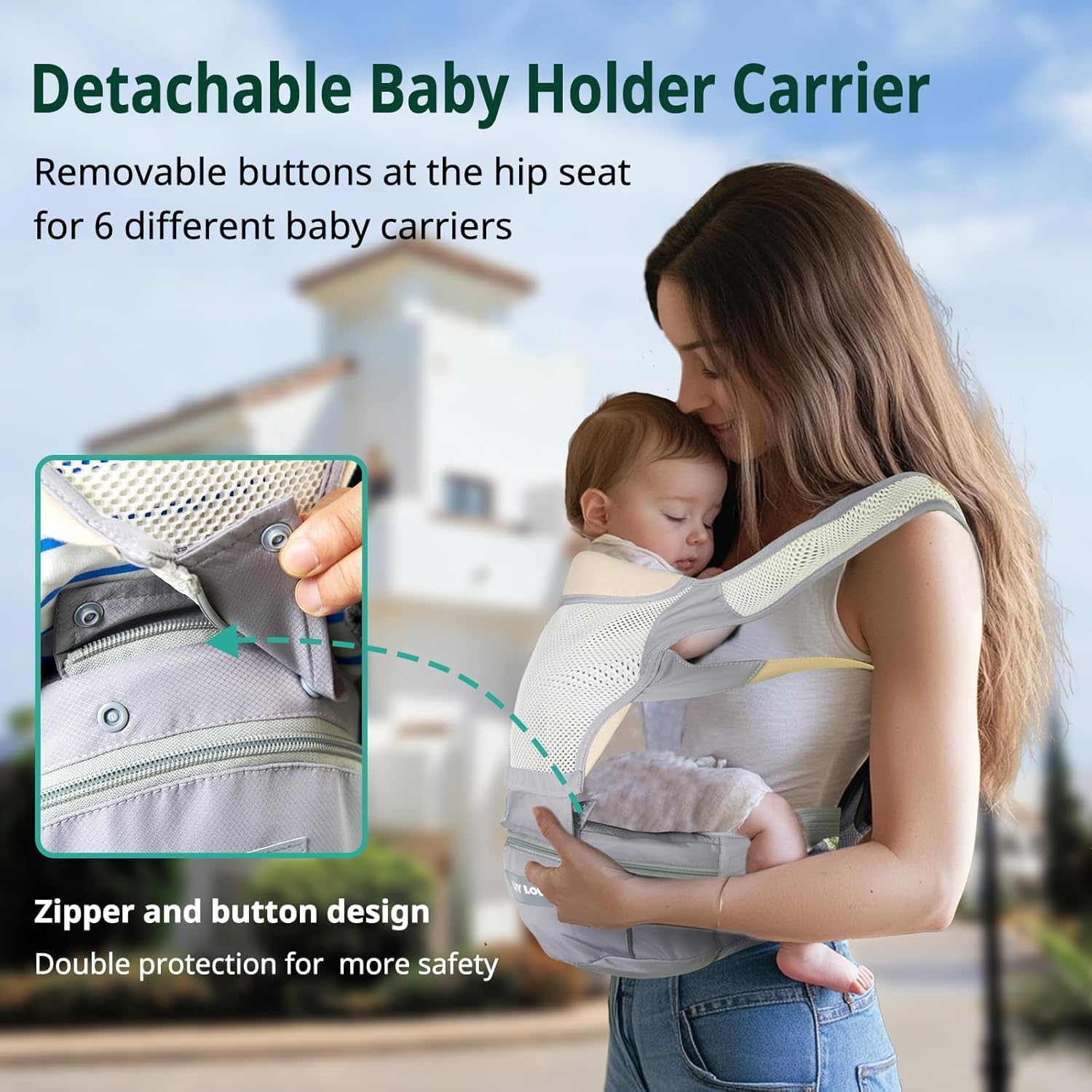 - 6-in-1 Adjustable Detachable Hip Carrier: 6 carrying positions toddler carrier, when detached, Horizontal/Facing Out/Facing In ways; when not detached, Facing Out/Facing In/Back Carry ways