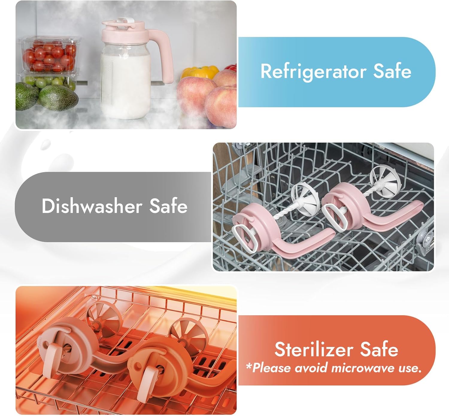 - ๐๐๐๐จ๐ซ๐ญ๐ฅ๐๐ฌ๐ฌ ๐๐ฅ๐๐๐ง๐ข๐ง๐ : Fully disassemblable design. All parts are dishwasher safe. No hidden crevices for milk residue