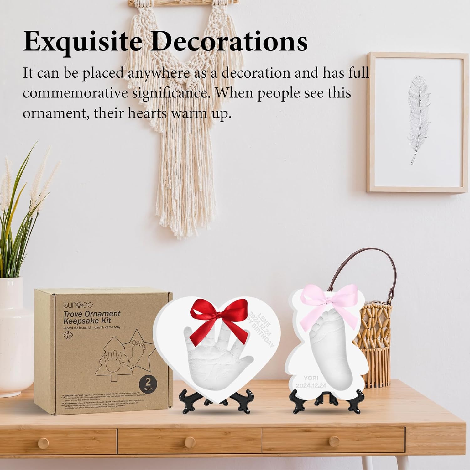 - Record Your Baby's Growth:Create Meaningful memories Don't let newborn exhaustion erase those precious memories.This baby souvenir clay ornament captures their perfect little handprint, footprints, fingers and toes. It's a must for newborns!