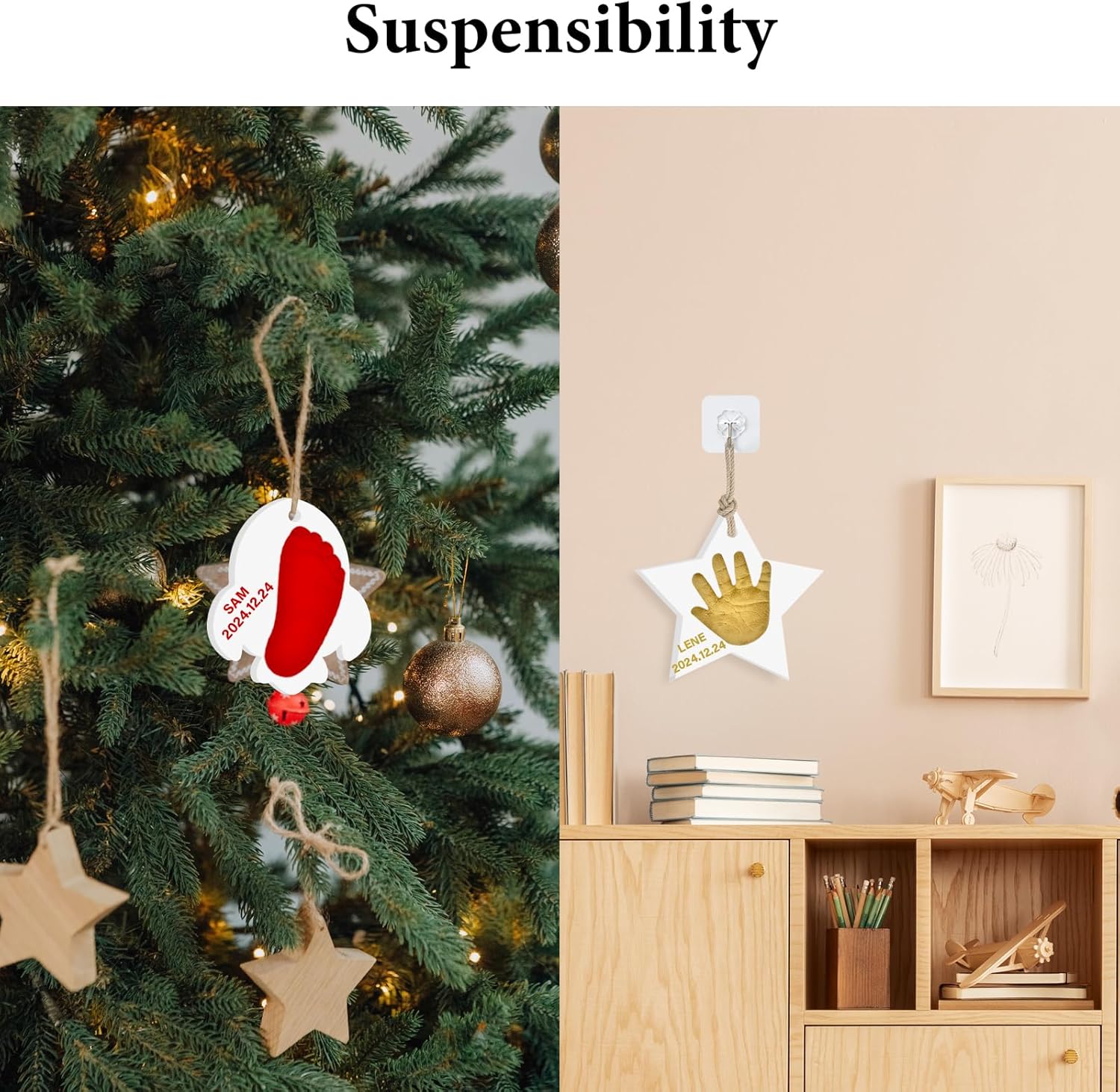 - Record Your Baby's Growth:Create Meaningful memories Don't let newborn exhaustion erase those precious memories.This baby souvenir clay ornament captures their perfect little handprint, footprints, fingers and toes. It's a must for newborns!