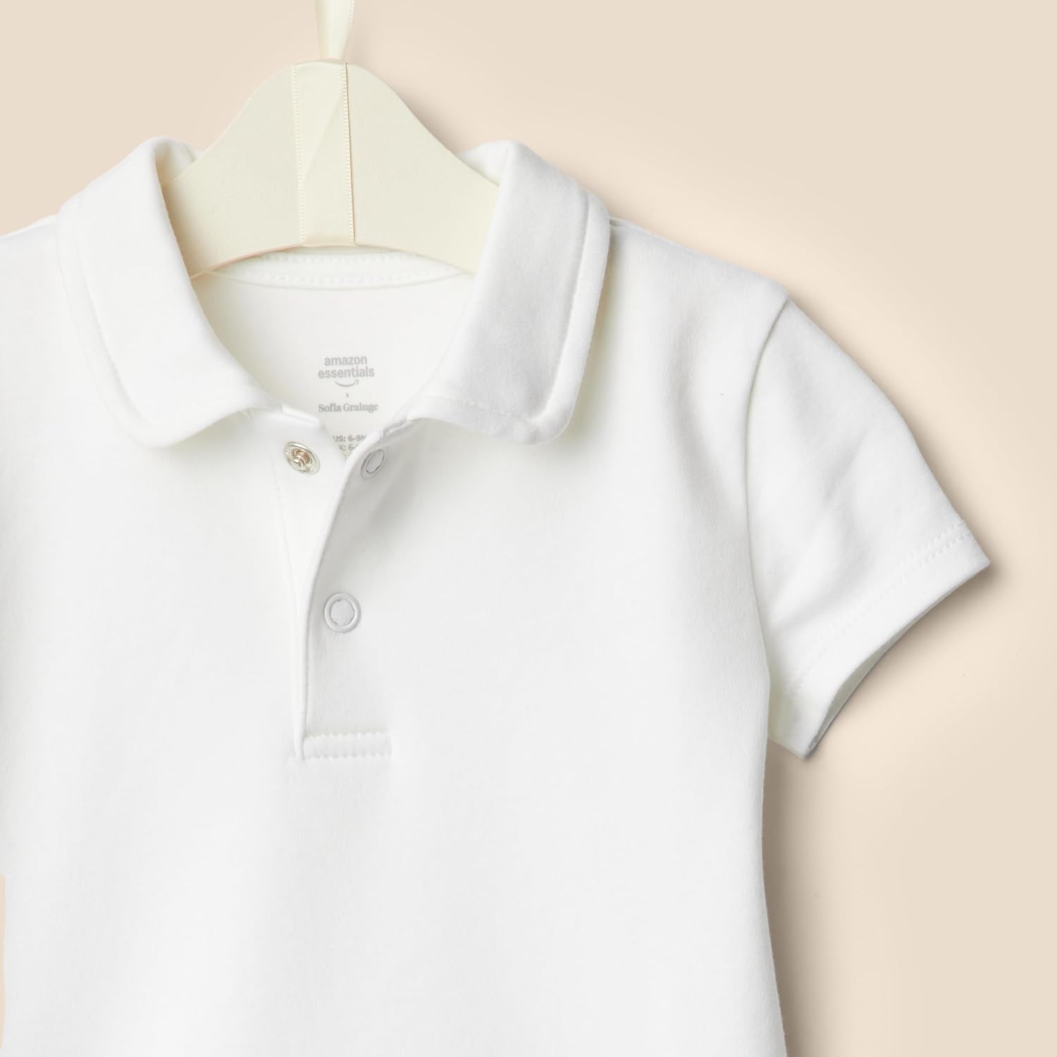• DETAILS: Features a polo collar with a snap front placket and gusseted snap closure at leg opening
