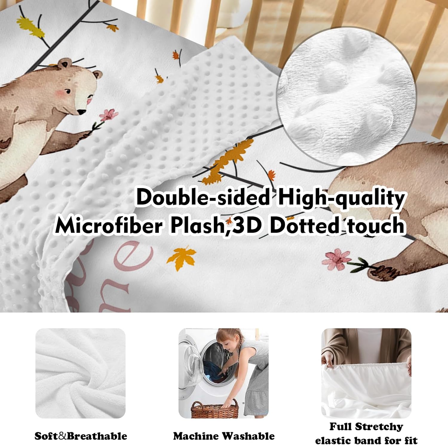 - Easy Care and Convenience: Our crib sheet, double layer blanket, and changing pad cover are all machine washable, ensuring easy cleaning and maintenance, suitable for busy new parents.