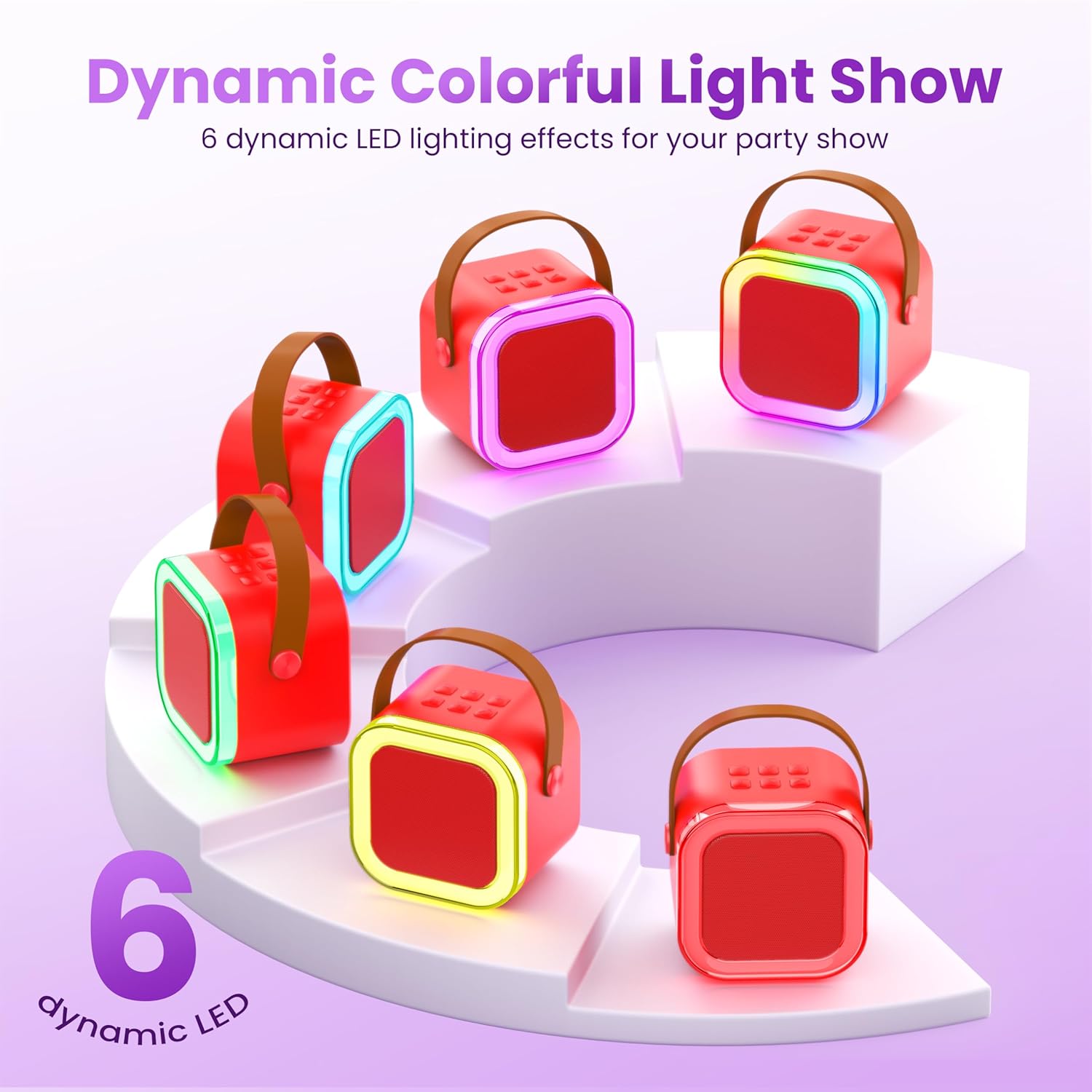 - 【5 MAGIC VOICE & COLORFUL LIGHTS】:The PA karaoke system is equipped with colorful disco lights and has an independent button to switch the lights.5 magic voice effects: monster, baby, female, male,original/accompaniment,this Bluetooth party speaker is providing endless fun and happiness for adults and kids.