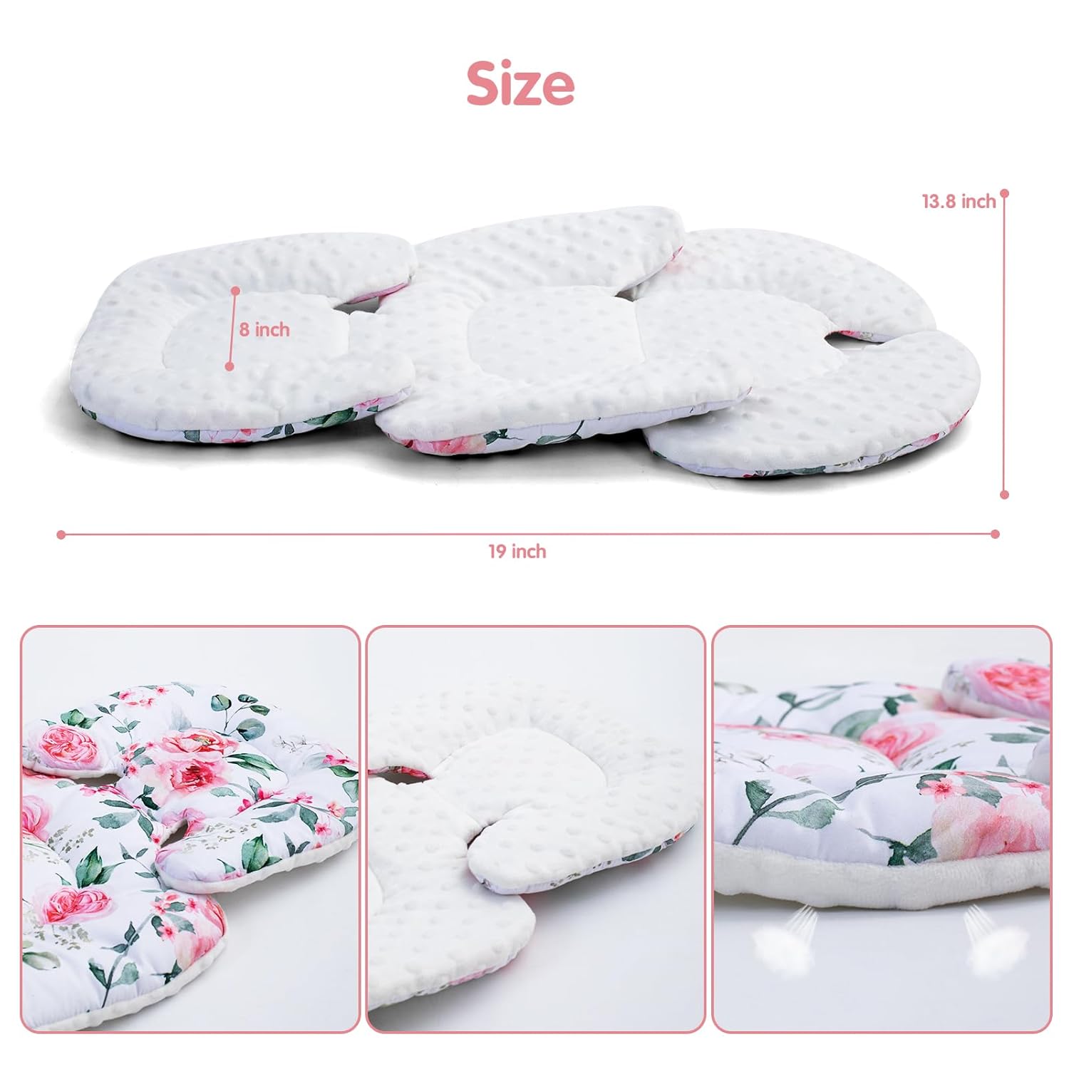 Infant Car Seat Insert for Girls Boys, Ultra Soft Carseat Head Support for Infant, Breathable Baby Car Seat Cushion with Double Side Design, Baby Car Seat Head Support for Stroller, Swing, Bouncer