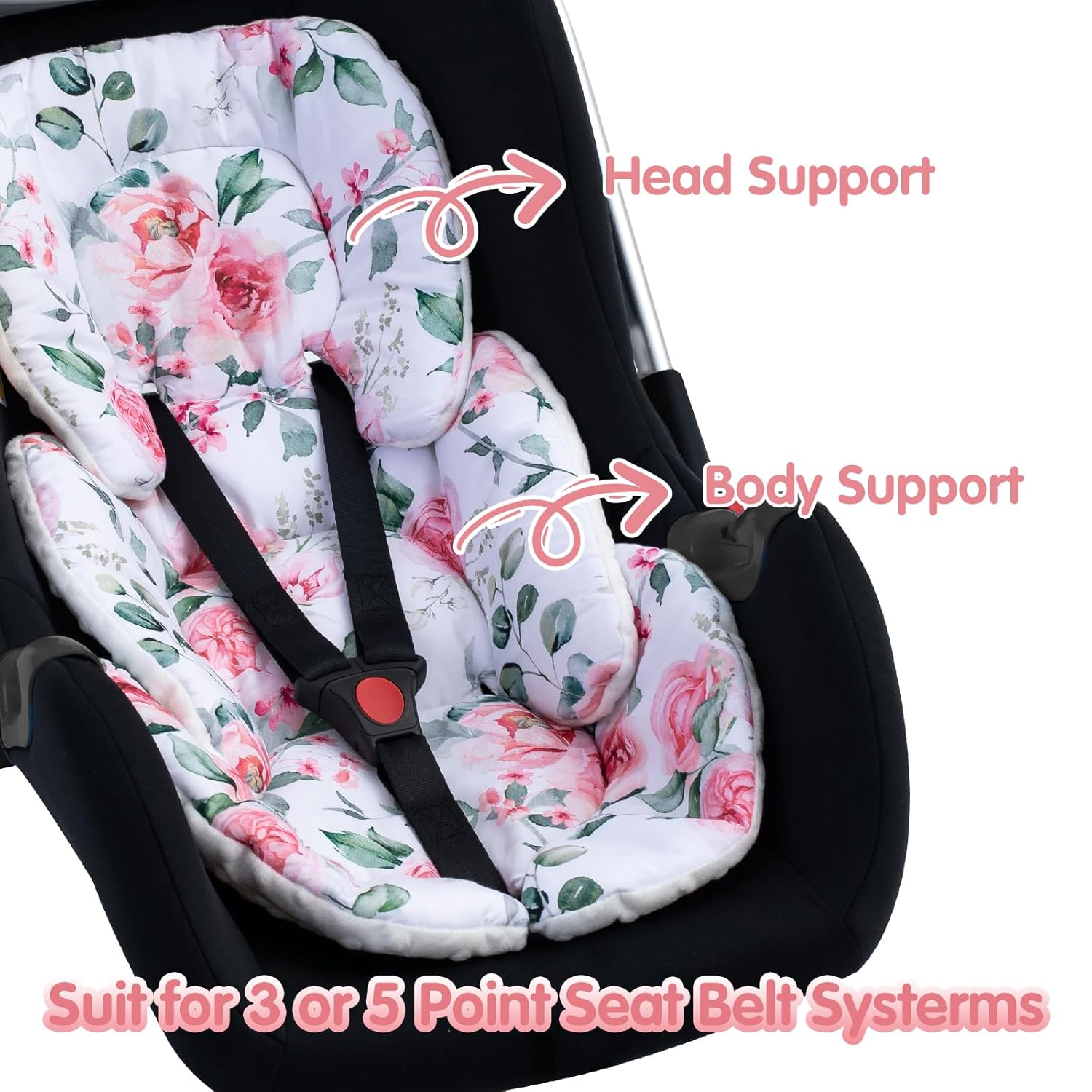 - Compatible: The baby car seat pad is suitable for baby products with 3-point or 5-point system, not only suitable for strollers, but also can be used for baby car seats, swings, bouncers, changing tables, rockers, etc.