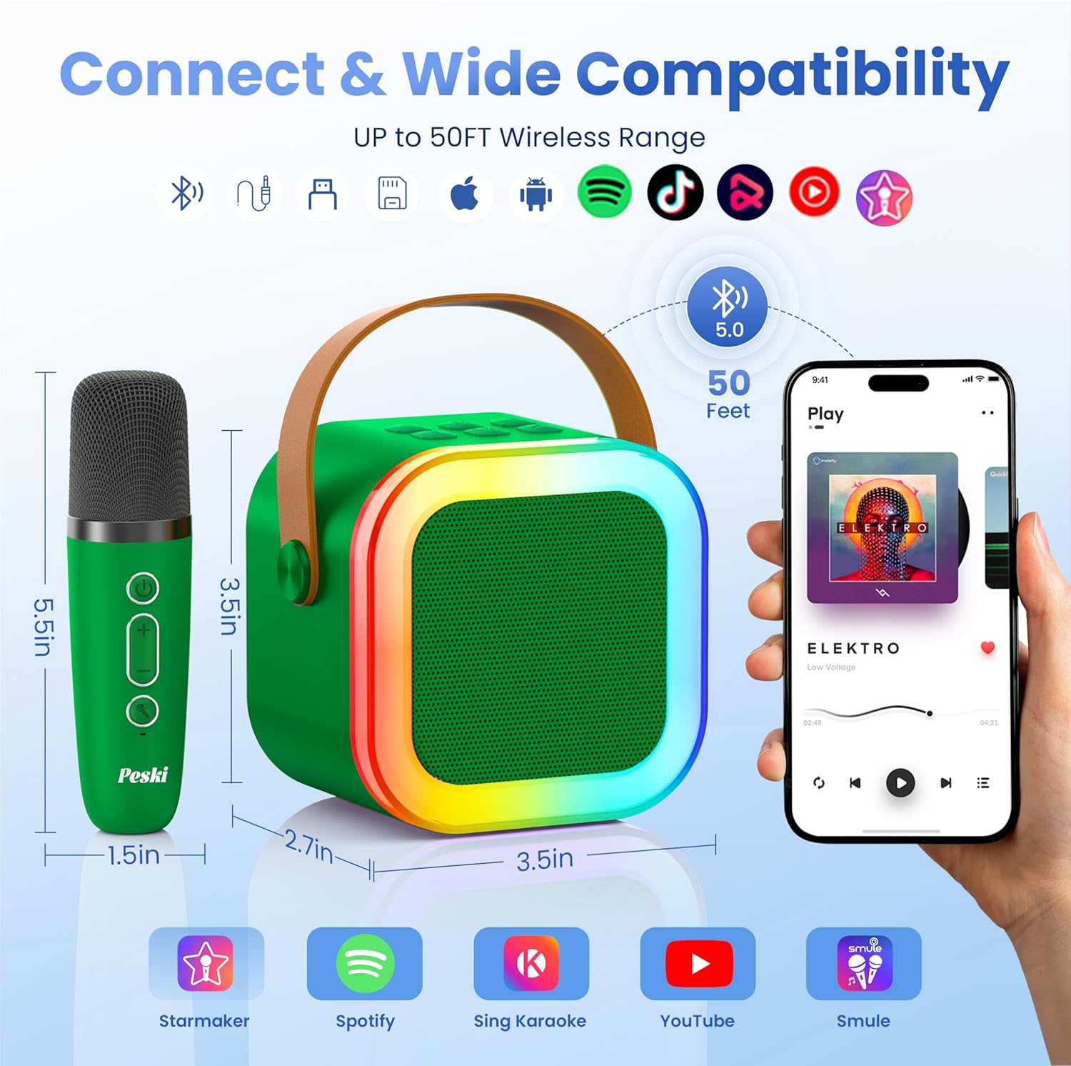- 【Perfect Gift Ideas for Kids and Adults】: This mini karaoke machine is an ideal gift for birthdays,parties,gatherings,teen girls boys 8-12 years, ages 3, 4, 5, 6, 7, 8, 9, 10, 11, 12+ years old.Great gifts choices for Halloween,Christmas,Easter,Valentine,Thanksgiving,New Year