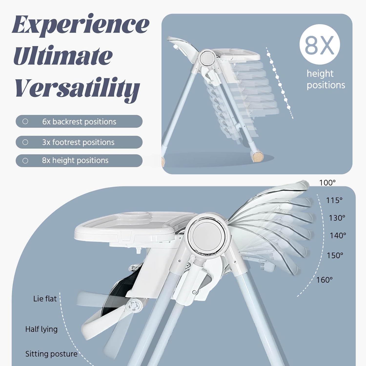 5 in 1 Baby High Chair Swings for Infants Foldable Rocking 8 Level Height Adjustment Eco Friendly Washable PU Cushion(White)
