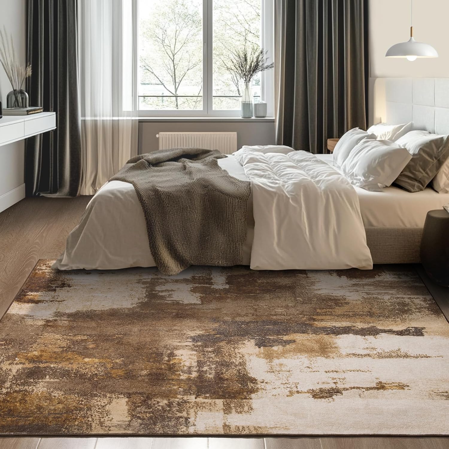 - Multiple Scenarios:Our unique and stylish modern abstract design will elevate your home décor. Designed in sophisticated shades, the collection features abstract prints in an impressive mix of vintage tones. Its purposefully faded look is perfect for modern industrial and contemporary homes. This neutral area rug is suitable for all areas of your home, including the living room, entrance, bedroom and dining room. The thickness is medium, adding comfort and warmth to your space