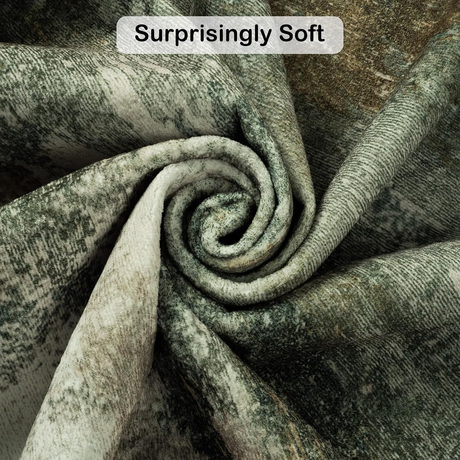 Kelarea Living Room Rug, 8x10 Rug Modern Abstract Washable Rugs Green Faux Wool Vintage Carpet, Non Slip Large Rugs for Bedroom, Dining Room, College Dorm, Home Office