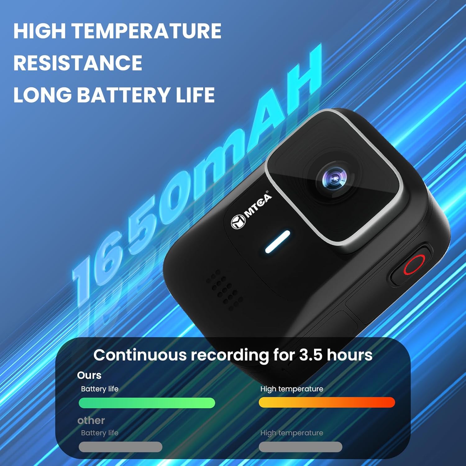- 🔋3.5-Hour Marathon Battery & Charge-While-Record Never cut adventures short! The long-lasting 3.5-hour battery supports continuous recording while charging—ideal for cross-country road trips, 24/7 dash cam use, or multi-day expeditions.