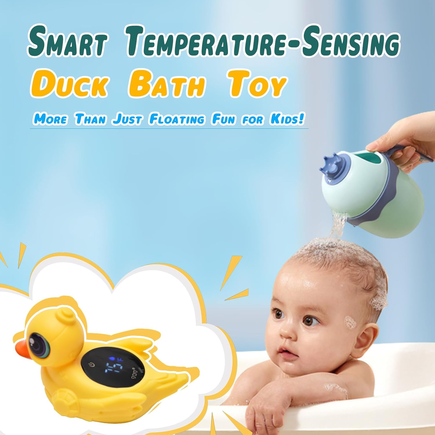 TKY Big-Eye Duck Baby Bath Thermometer - Digital Water & Room Temp Monitor with LED Alerts, Floating Bath Safety Essential for Newborns, Infants, Toddlers (Rechargeable, IP67 Waterproof)