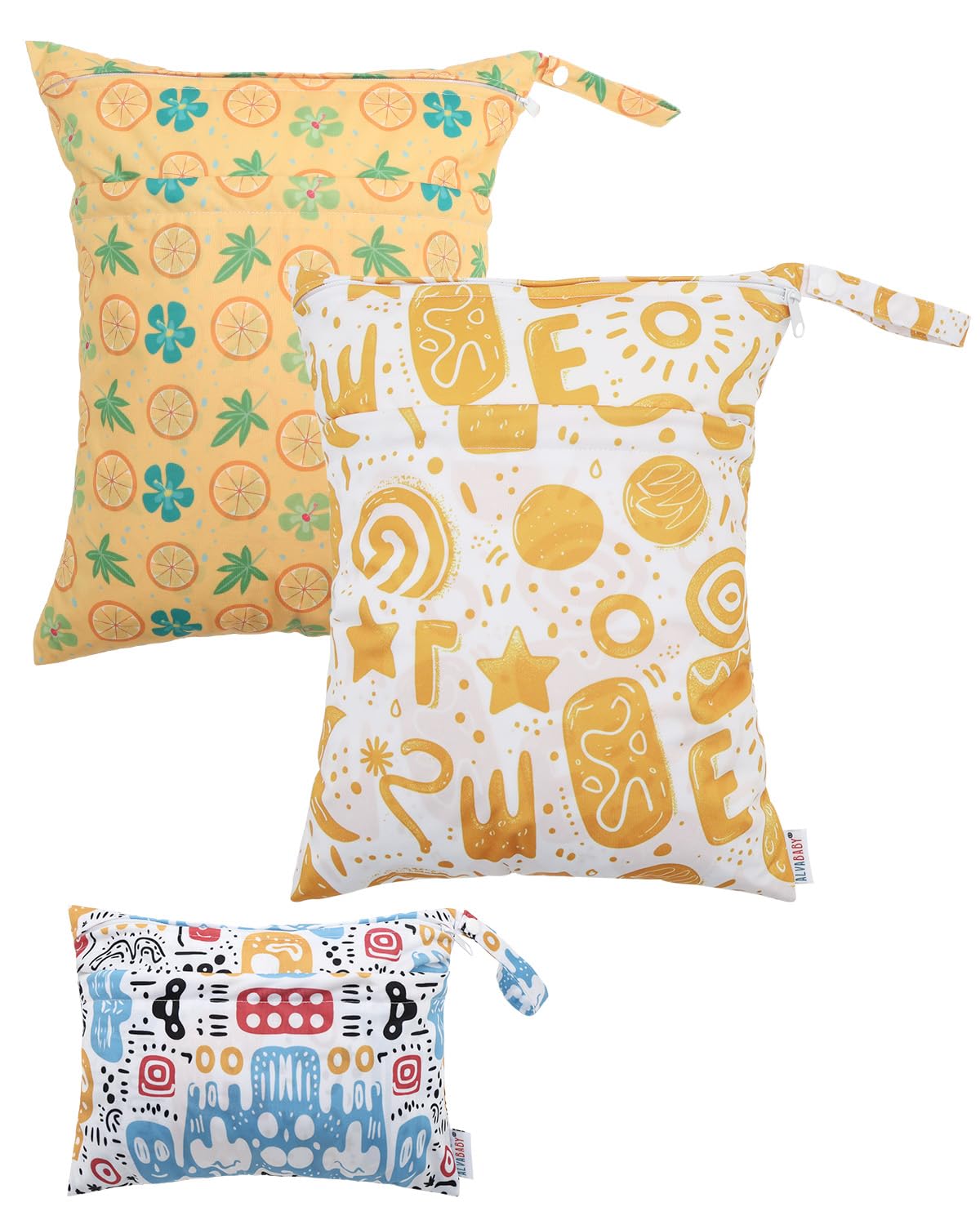 ALVABABY 3 Cloth Diaper Wet Dry Bags Waterproof Reusable with Two Zippered Pockets Travel Beach Pool Daycare Soiled Baby Items Yoga Gym Bag for Swimsuits or Wet Clothes Small medium Large 3L-SML05