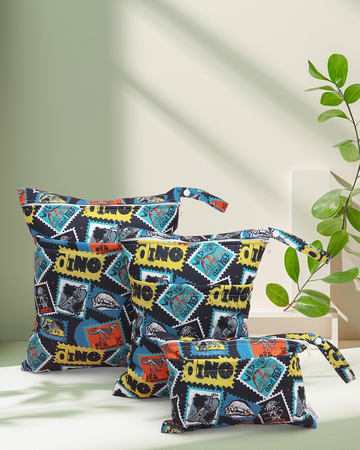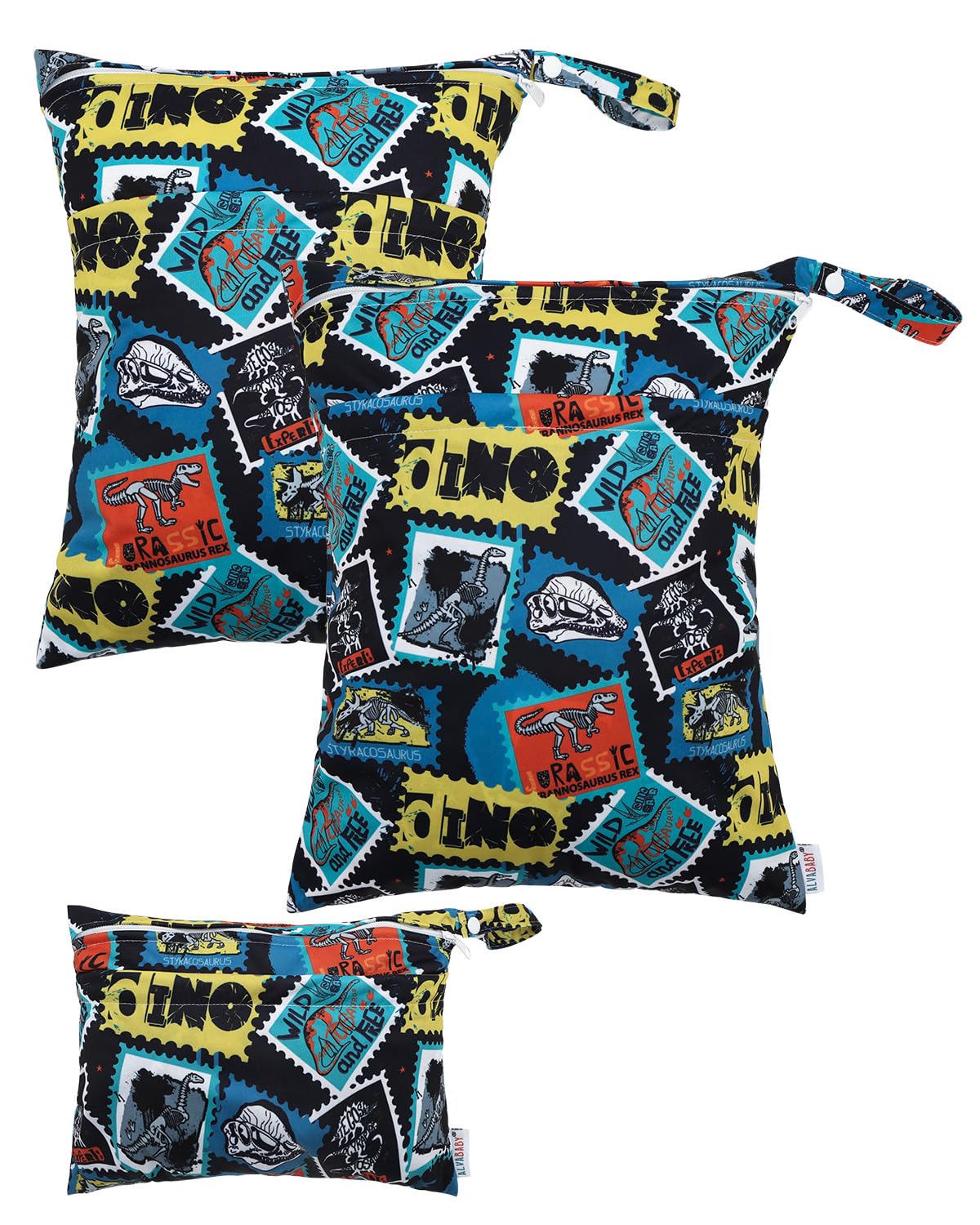 ALVABABY 3 Cloth Diaper Wet Dry Bags Waterproof Reusable with Two Zippered Pockets Travel Beach Pool Daycare Soiled Baby Items Yoga Gym Bag for Swimsuits or Wet Clothes Small medium Large 3L-SML09