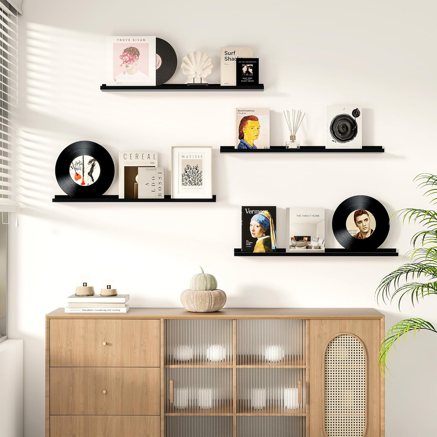 Picture Ledge Shelf for Wall, Floating Shelves Set of 4, 36 Inch Long Nursery Book Shelves for Toys Storage, Kids Bookshelf Wall Mounted for Books Photo Frames, Black