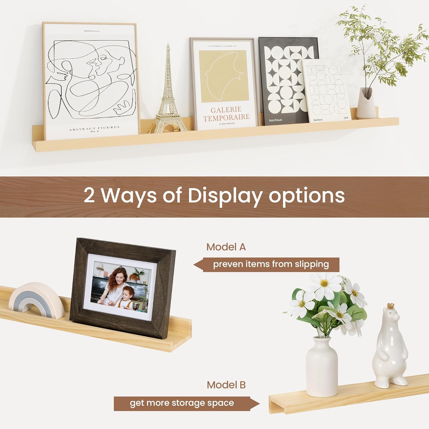 - Chic Minimalist Design: Solid pine wood picture ledge shelves available in multiple colors and sizes, these picture shelves complement any decor, from modern to farmhouse. Use them alone or in a gallery-style arrangement to create a stylish focal point