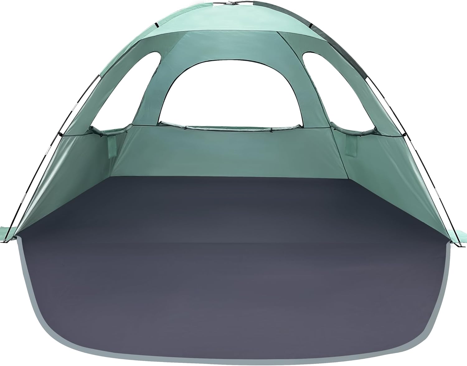 - Omni-directional Zipper for Added Privacy: Our beach tent uses omni-directional zipper design. It allows you to open and close the floor mat from the inside, outside, and as well as from both sides. It’s very convenient to get in and out. The extended front floor provides extra room for more activities, which can be zipped up when you need extra private space, or are away from the tent.