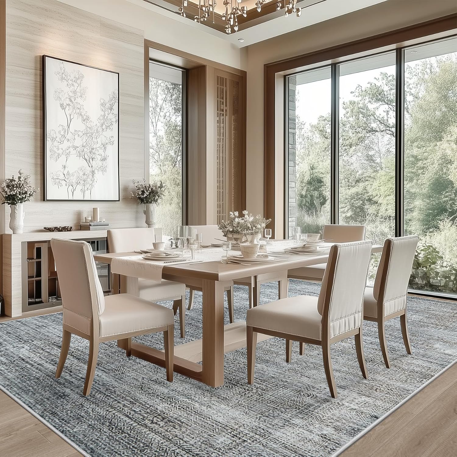 9x12 Area Rug Living Room Rugs - Washable Rug Large Modern Abstract Soft Thin Carpets Indoor Floor No Slip Vintage Carpet for Bedroom Under Dining Table Nursery Home Office Decor Gray Blue