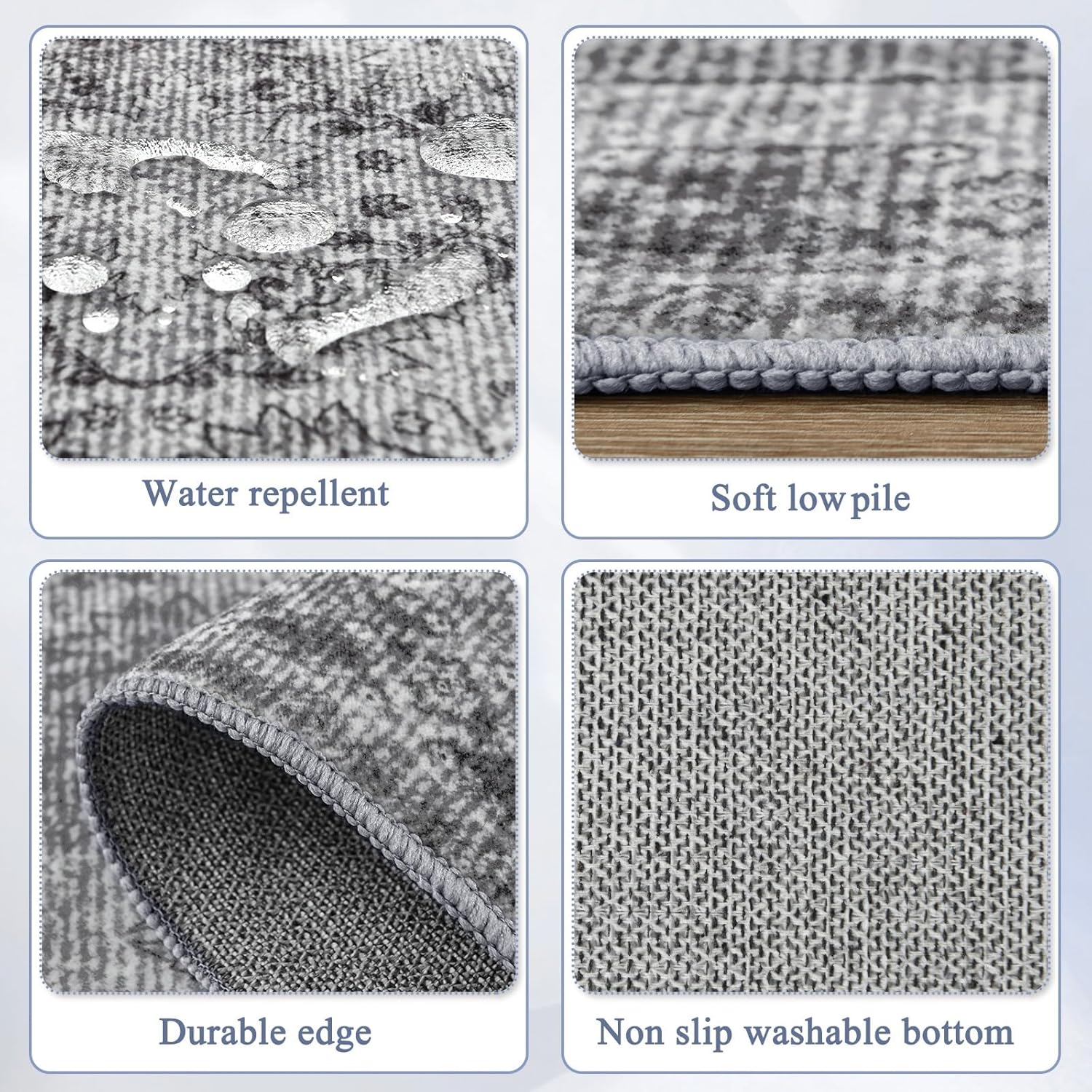 - Machine Washable Rug: Life is busy, but cleaning this gray and white area rug doesn’t have to be! The vintage area rug is machine washable, making maintenance a breeze. Simply toss it in the wash on a gentle cycle, and it’ll come out looking as good as new. Its high quality and non-shedding property ensure it stays fresh and vibrant, even with daily use. Perfect for families, pet owners, or anyone who values convenience without compromising on style