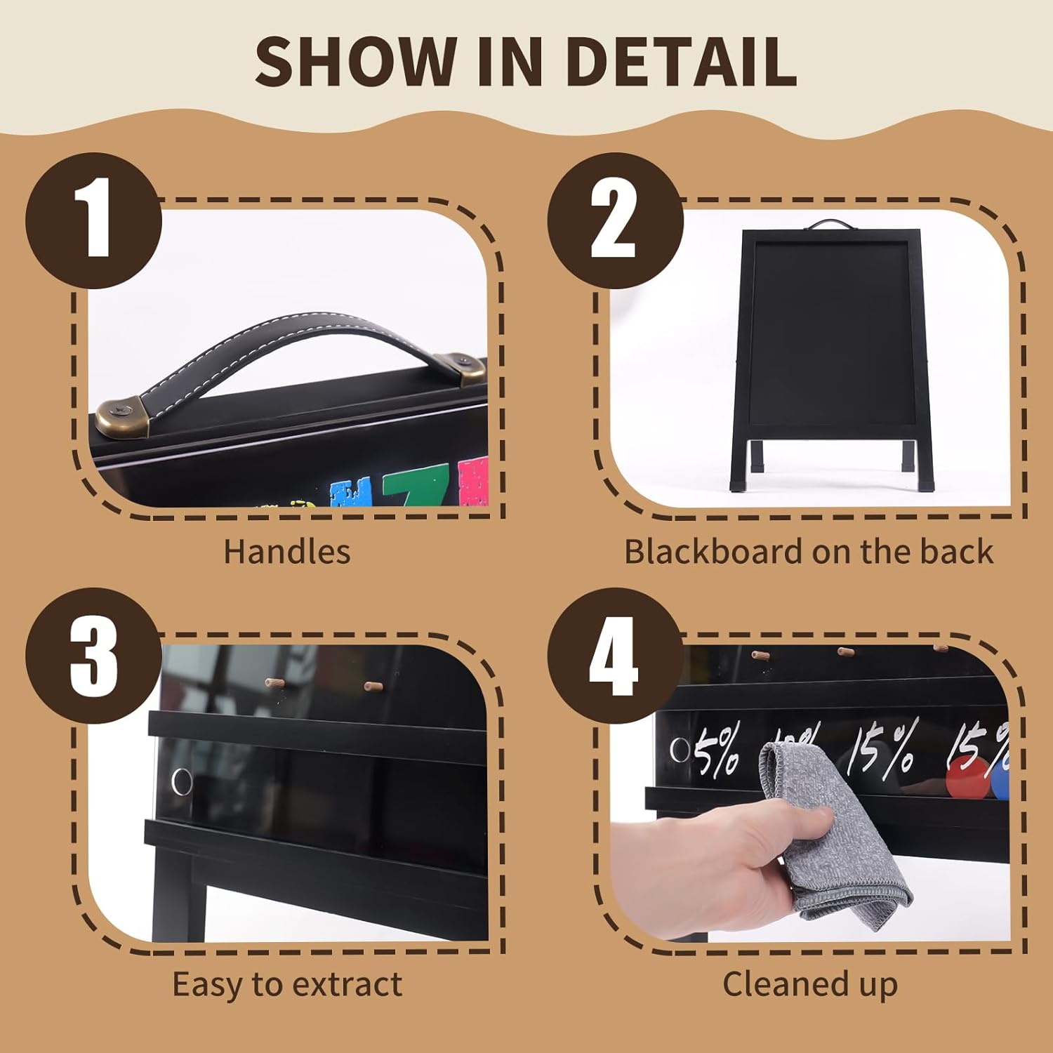 - 【Complete Set with Customizable Accessories】- This set includes 10 coin drop discs, 6 dust-free chalks, 6 liquid chalk markers, 2 double-sided fleece rags, and spare wooden pegs, allowing you to easily customize your own prizes and game content on the wooden chalkboard sign