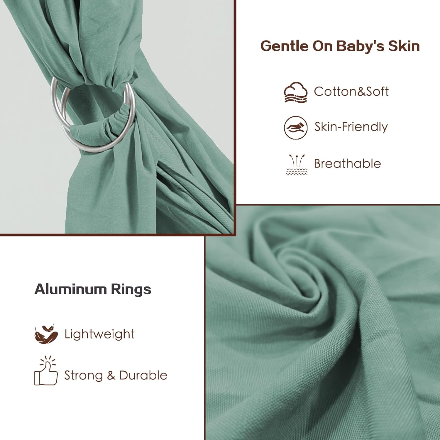 Baby Wrap Ring Sling 7-35 lbs, Baby Sling Carrier for Newborn, Toddler, Infant Holder, Lightweight Baby Carrier Wraps, Green