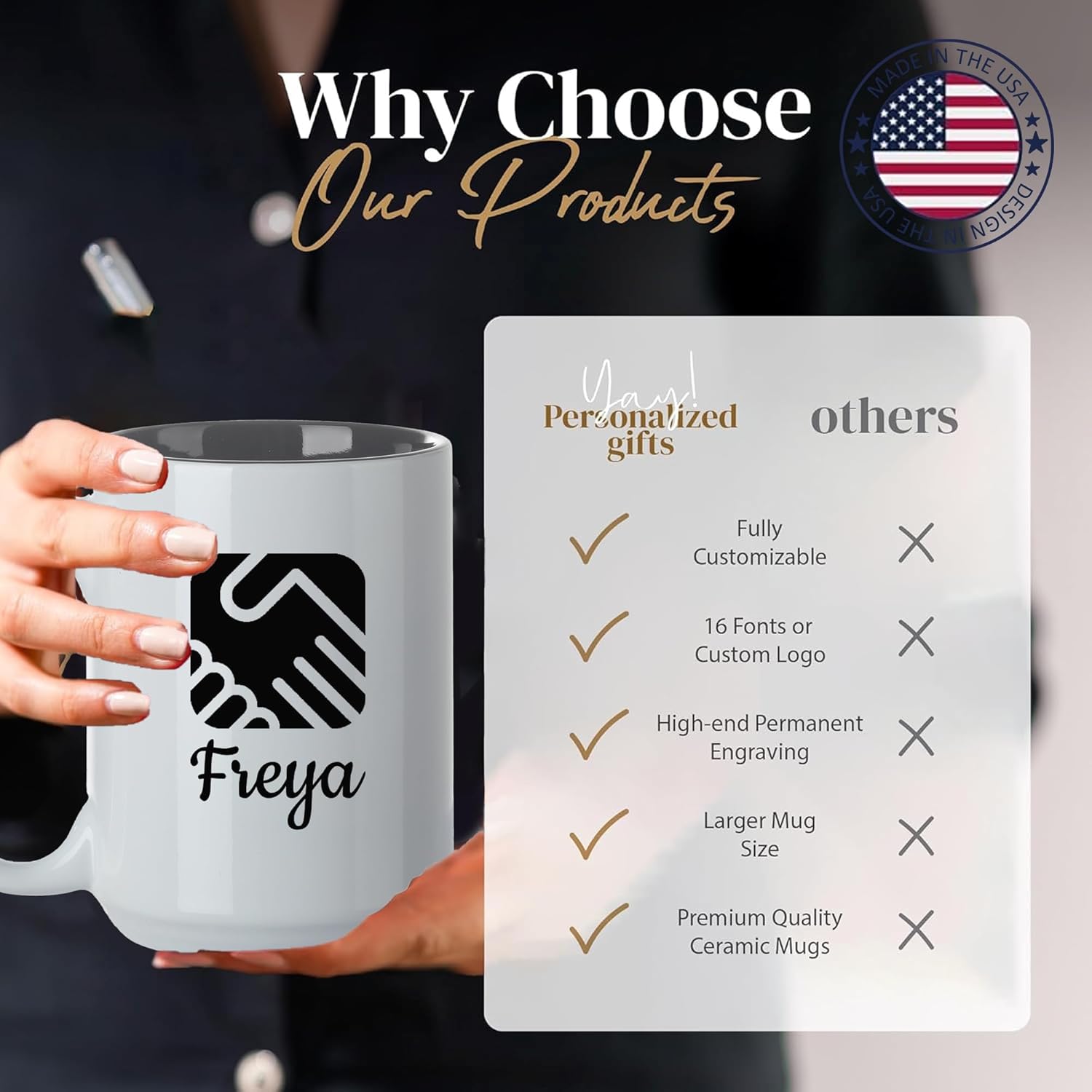 Personalized Coffee Mug, Custom Text or Logo Ceramic Mug, 15oz Customized Name Tea Cup, Gifts for Men & Women, Mother's Day Anniversary Christmas (Engraved Custom Logo, White)