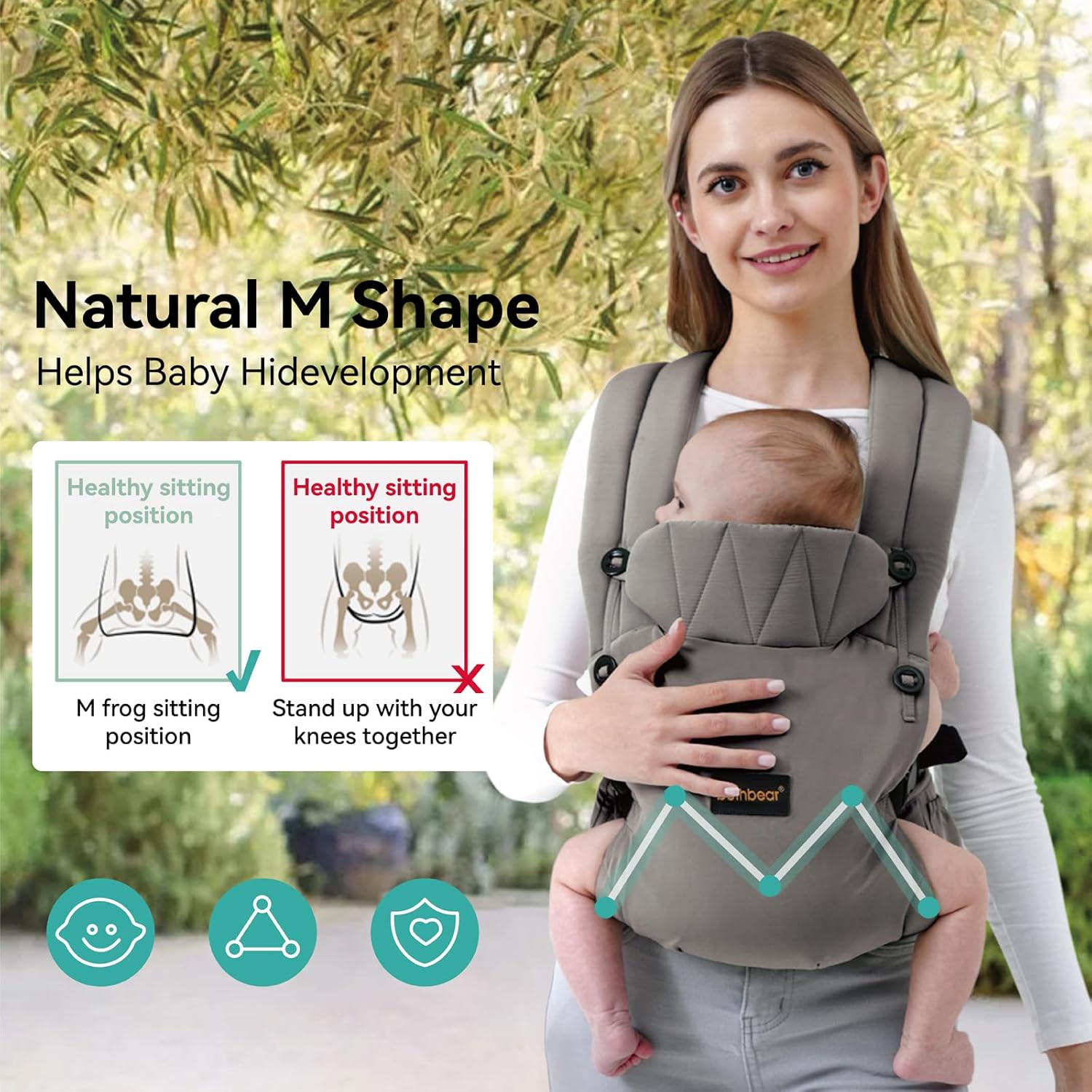 - Ergonomic Natural "M" Shape Design: Our baby carrier is designed with an adjustable waist belt - adjustable from the smallest newborn to toddler. catering to your child's growth at every stage for 7-35lbs, Achieve a safe fit and Ergonomic natural "M" position, regardless of your baby's size that ensures baby's healthy hip and spinal development.