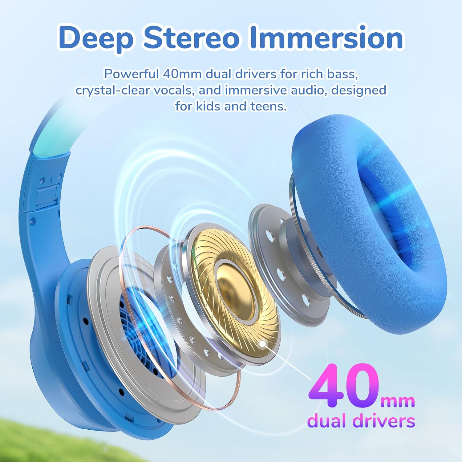 - Premium Sound & Crystal-Clear Calls. Immerse your child in rich, high-fidelity audio with powerful 40mm drivers, delivering deep bass and crisp highs. The built-in HD microphones enhance voice clarity, making every call and online interaction sound natural and distortion-free.