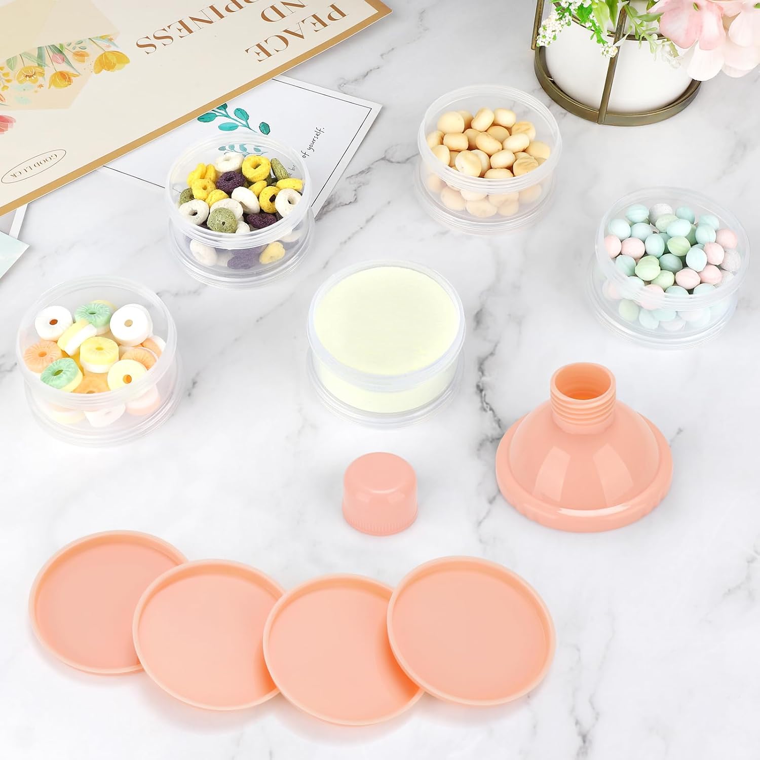 Accmor Formula Dispenser On The Go, 5 Compartments Stackable Formula Container for Travel, Baby Milk Powder Kids Snack Container, BPA Free