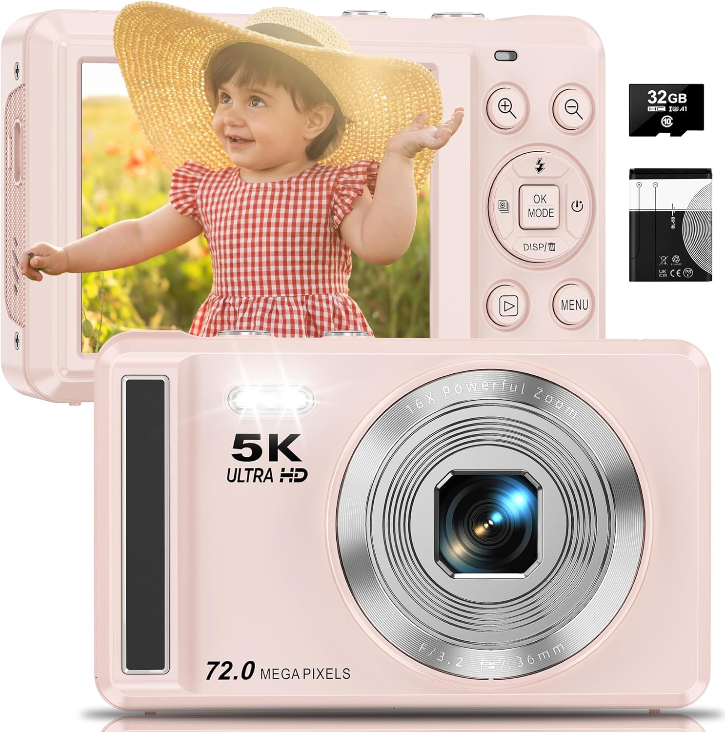 5K Digital Camera - 72MP UHD Digital Cameras for Photography - Autofocus Point and Shoot Small Camera with Flash for Kids - 2.8 Inch Screen Compact Portable Vlogging Camara with 16X Zoom, 32GB SD Card