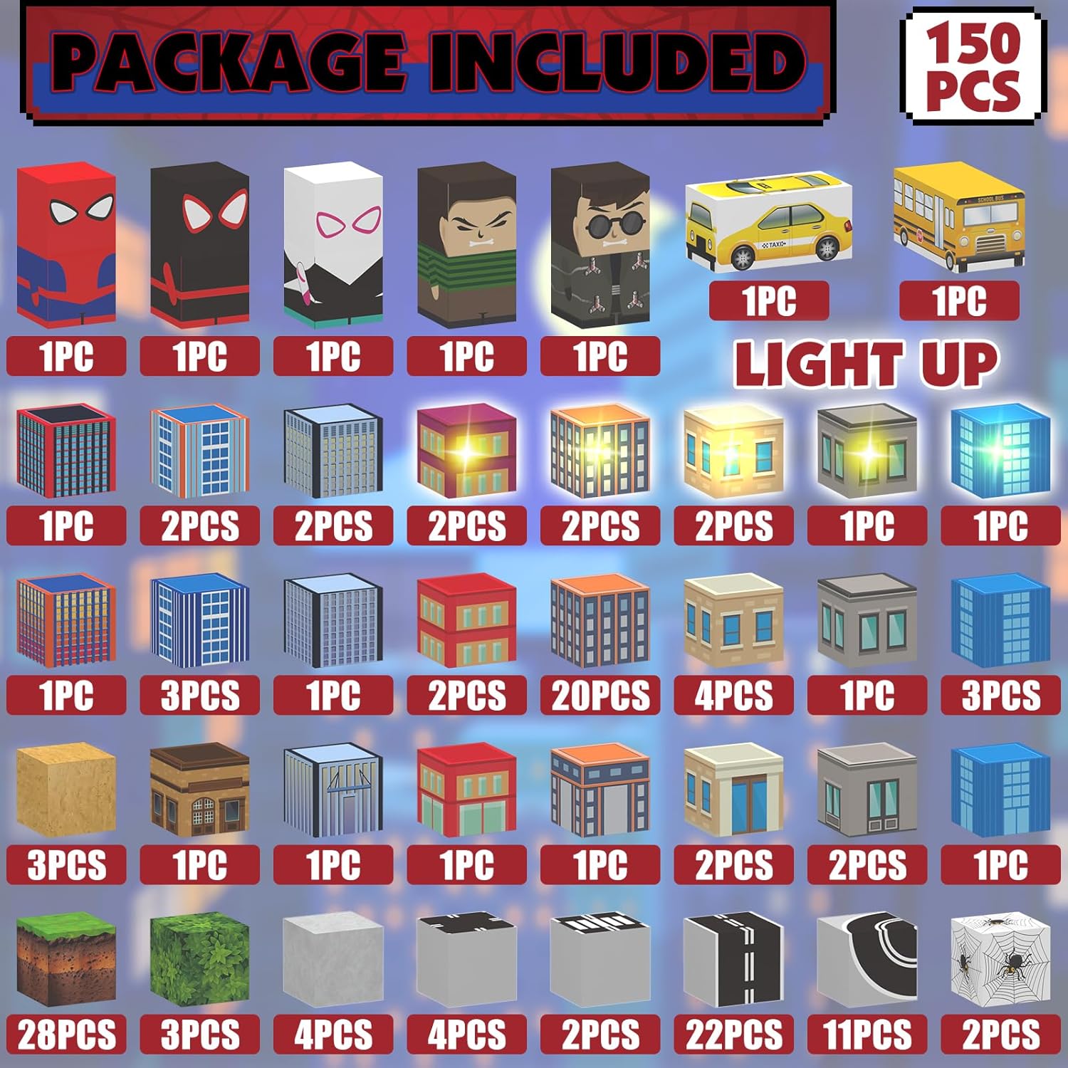 - 8PC with Light : Flip the switch, and the 8 glowing blocks light up, filling playtime with mystery. They're great for sprucing up city night or any scene kids build