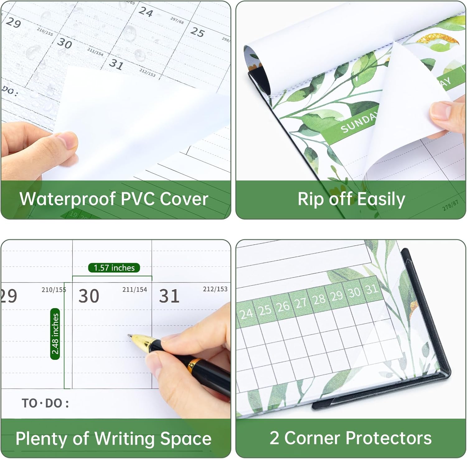 - Calendar Features: Thick paper resists ink seepage, ensuring clean and crisp writing. It comes with a transparent PVC cover to protect against dust and liquids, along with two corner protectors to keep the pages flat. The cutting line allows for effortless tearing of each month's page, making it perfect for long-term use as a wall calendar.