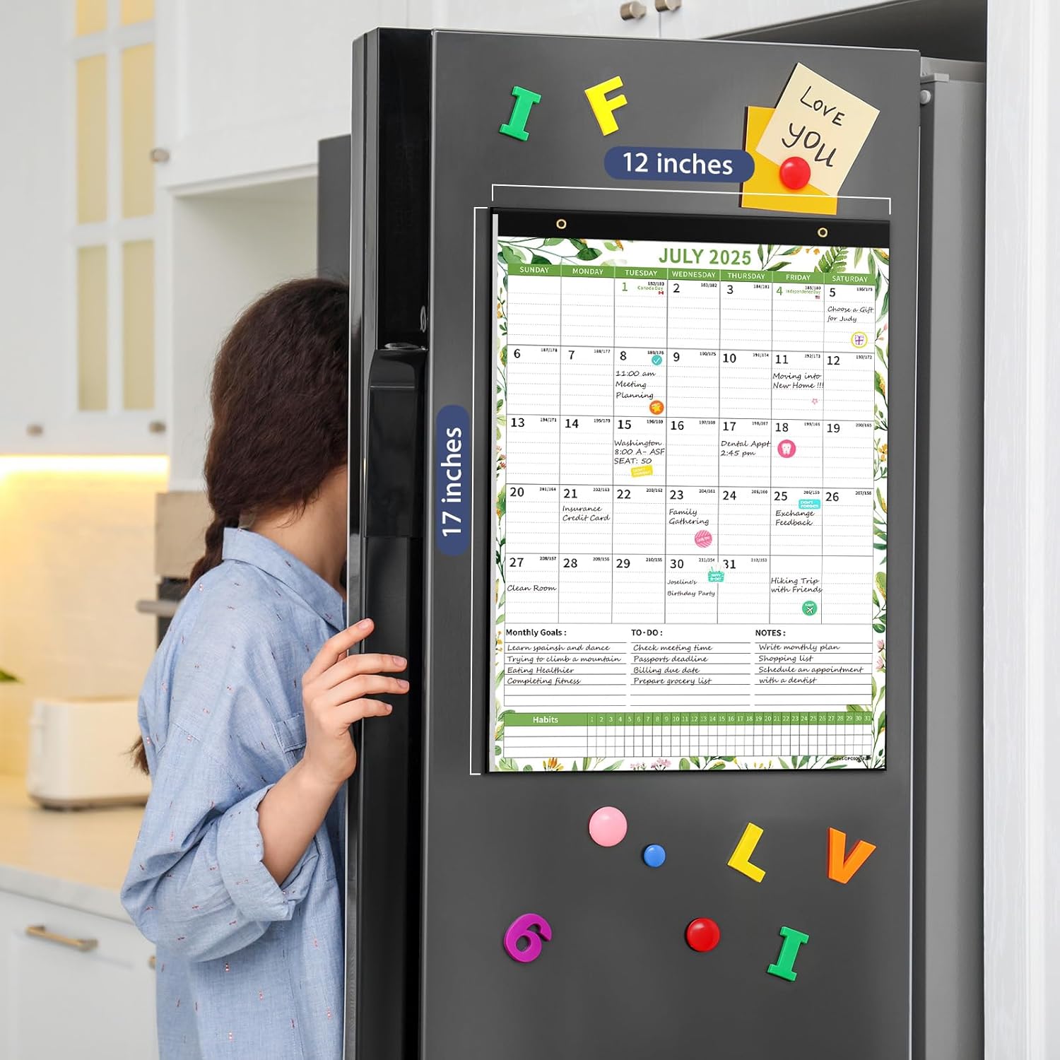 - Magnetic Calendar: July 2025 to Dec 2026 calendar with PVC Cover includes a magnetic strip, hanging rope, and 3 personalized stickers, ensuring no missing or duplicated months. Hang it on your fridge or wall for convenient placement. With 18 months, easily track your schedule and plan ahead effectively.