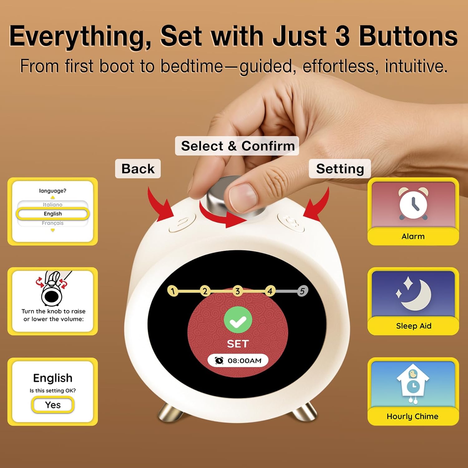 - 【Sleep Sounds & Animated Retro Game & Kids Themes】– Fall asleep peacefully with 10 calming Sleep Sounds, including White Noise, nature ambiances, and gentle melodies. Brighten your routine with screen auto-dimming to night-friendly brightness, while real-time temperature/humidity readings help optimize your sleep environment.