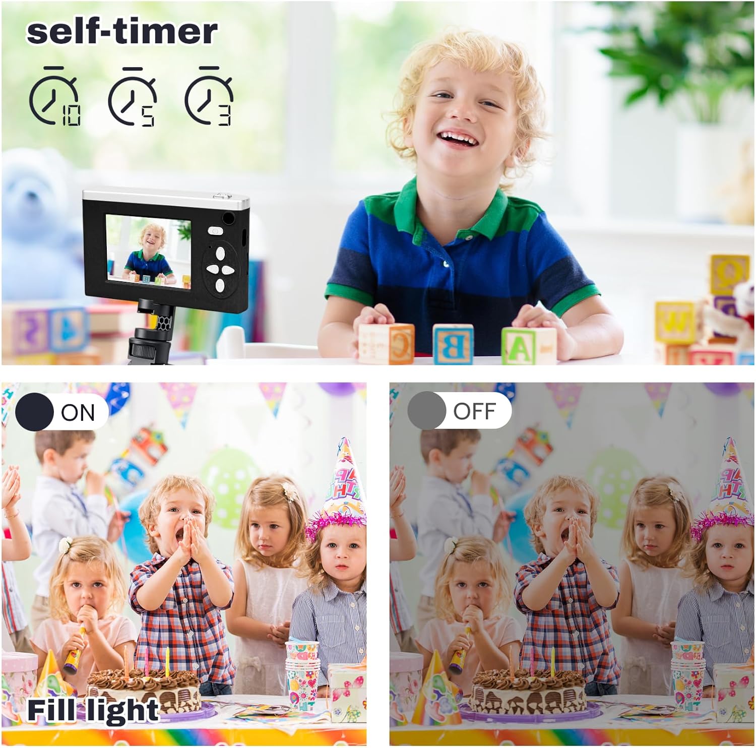 - 【HD Video Recording & Compact Design】 Record smooth 1080P videos and carry this lightweight camera anywhere—ideal for travel, school projects, or daily use by children aged 5+